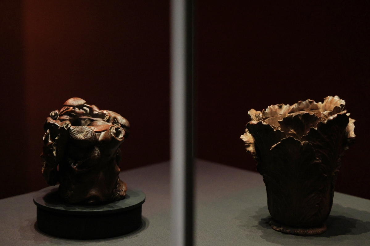 濮澄款松樹紋壺(左)和封錫爵款白菜式筆筒(右)