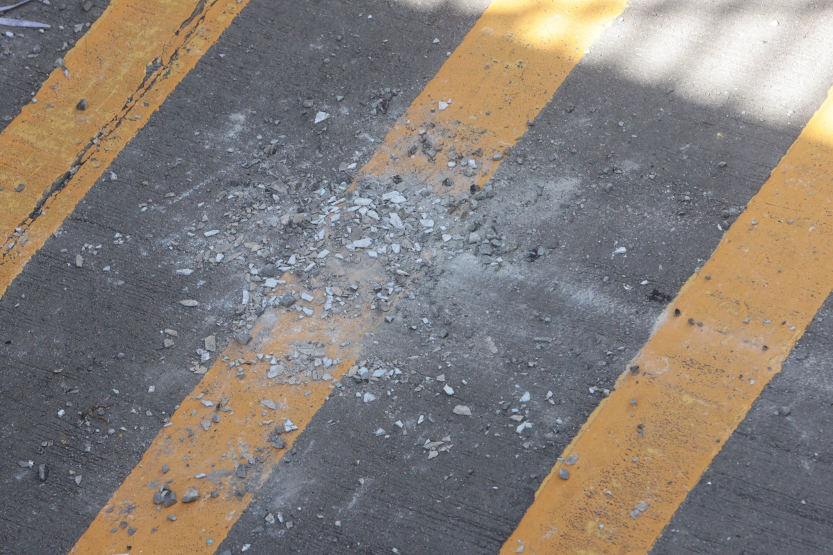 寶安大廈大量石屎剝落,石屎最大有拳頭般大,幸無人受傷