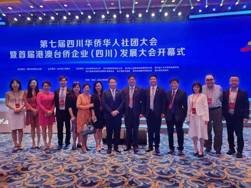 香港僑界社團聯會會長黃楚基(右六)及常務副會長兼秘書長廖宇軒(右七)與代表團成員於“第七屆四川華僑華人社團大會”上合照。 黃楚基指出,四川省位處 “一帶一路”和“長江經濟帶”的戰略銜接紐帶,陸上絲綢之路和海上絲綢之路的交匯點,是連接中國西南、西北、溝通中亞、南亞、東南亞的重要交通走廊,因此對推動中國西部長遠發展極爲重要。 他說,該會不少成員亦於四川和鄰近地區投資,因此該會相信四川和香港的商貿往來將會更趨頻繁,兩地擁有廣闊合作空間和巨大合作潛力。該會覺得這次大會的安排非常細緻,讓與會者考察省内不同經濟區如成都平原、川東 北、川南及天府等,深入瞭解省内發展勢態和感受澎拜的增長動力。 部分代表團成員參加“走進南充”及“2023 年海外華裔傑出青年天府行”兩個考察活動。