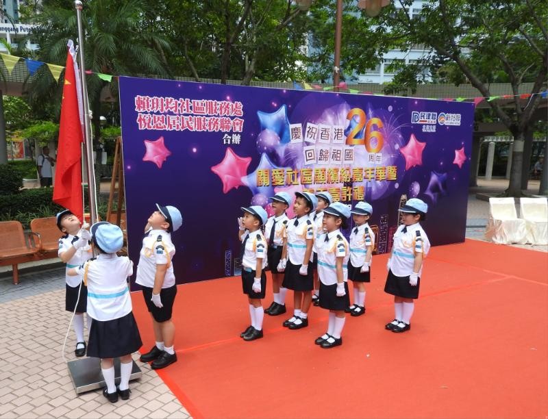 香港新聞網7月10日電 7月9日由悅恩居民服務聯會及民建聯、新社聯、天水圍北分區委員會委員賴玥均社區主任舉辦慶祝香港回歸祖國二十六周年關愛社區顯繽紛嘉年華暨義工嘉許禮,與居民共渡愉快的周日。 賴玥均表示,衷心感謝立法會議員劉國勳先生MH、新界社團聯會副會長趙秀嫻女士MH、天水圍南分區委員會主席李月民先生MH、天水圍北分區委員會主席姚國威先生MH、天水圍婦聯主席鄺月心女士BBS、天水圍北分區副主席陳嘉輝先生及佛教慈光幼稚園鄧淑君校長全力支持並擔任主禮嘉賓,及天水圍南分區副主席馬淑燕擔任大會司儀,讓活動生色不少。
