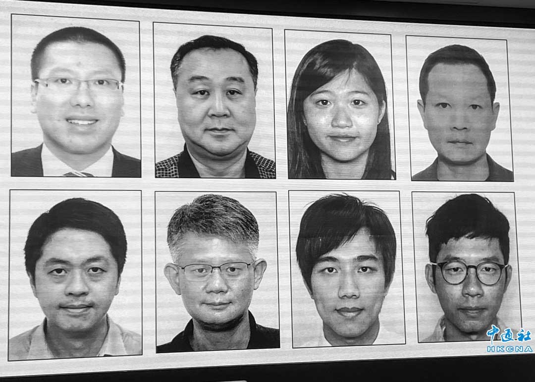 香港警務處國家安全處3日下午舉行記者會公佈,警方已申請拘捕令,通緝8名潛逃海外並涉嫌幹犯香港國安法罪行人士,包括任建峰、袁弓夷、郭鳳儀、郭榮鏗、許智峯、蒙兆達、劉祖廸、羅冠聰,每人懸紅100萬港元。(香港中通社記者 陳偉根攝)