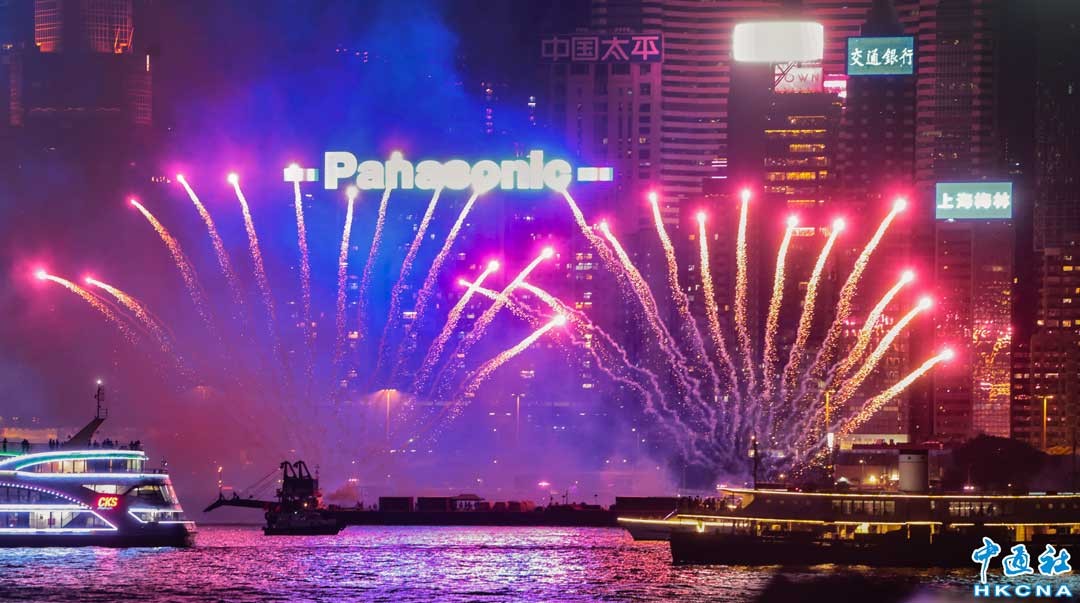 7月9日,香港維多利亞港上演水上煙火版“幻彩詠香江”,吸引大批市民和遊客在尖沙咀海傍欣賞。(香港中通社記者 謝光磊攝)
