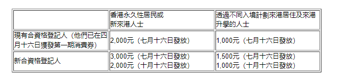香港中通社圖片 發言人指出,消費券計劃秘書處較早前抽取小部分登記人作資格審核,並通過短訊及電話聯絡被抽查的登記人,邀請他們提供相關的證明文件。如果因提交文件進度而未能趕及在7月16日獲發消費券,秘書處或其承辦商會在收到市民提交文件後盡快完成審核工作,並安排補發消費券予通過審核的市民。 發言人提醒市民,如收到有關消費券計劃的來電或短訊,應留意致電登記人時不會播放電話錄音;發放的短訊不會附有連結;不會向登記人直接索取個人資料;以及只會通過特定電話號碼致電或發出短訊。 合資格的香港永久性居民、新來港人士以及透過不同入境計劃來港居住以及來港升學的人士所獲發的券額如下:
