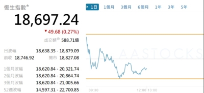 【港股半日速報】港股升49點分享到:
