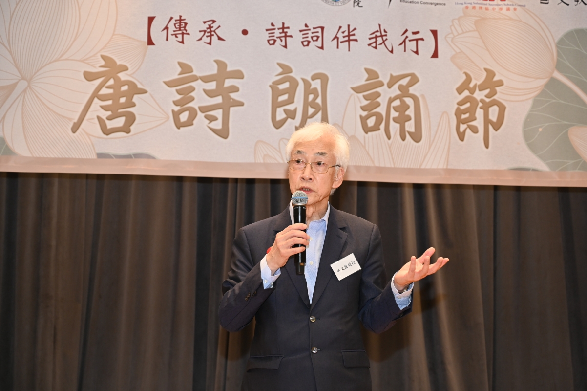 “傳承・詩詞伴我行”唐詩朗誦節隆重舉行 這是首個結合唐詩課程、航天科技、朗誦比賽和詩詞之旅的文化傳承項目,由招商局慈善基金會獨家撥款,灼見名家傳媒及中國青少年兒童文化藝術基金合作舉辦。 晉身總決賽的朗誦作品將交由中國航天科技送到外太空,讓琅琅的唐詩聲在宇宙中遨遊。26名勝出學生還會獲得全額資助回內地考察唐代詩人足跡,親身感受詩仙、詩聖、詩佛等著名唐代詩人走過的人生軌跡。 文灼非:透過朗誦遊學 感受詩詞之美 灼見名家傳媒文灼非社長致歡迎辭。他表示,數十位老師、家長及同學聚首一堂十分難得,並感謝招商局慈善基金會全力贊助活動,更製作一系列唐詩鑒賞短片,以影音方式教導欣賞詩詞之美,令人大開眼界。另外,又感謝香港大學中文學院贊助場地。