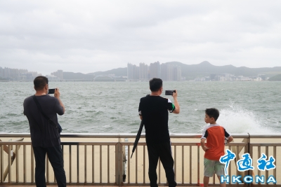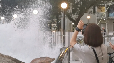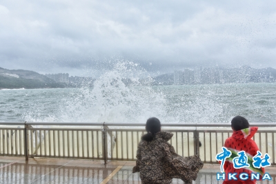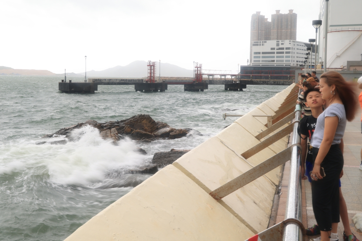 天星小輪暫停運營 在尖沙咀海濱和杏花邨海濱,有不少市民無懼風球,在海邊追風觀浪,感受“泰利”的威力。隨著“泰利”逐漸遠離香港,天文台表示,會在當日下午4時20分改發三號強風信號。