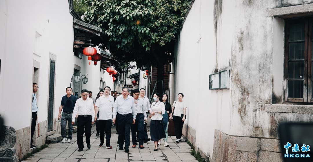 7月16日,香港立法會考察團展開福建省福州市的第二天行程。當天早上,立法會議員到訪坐落於福州市主城區的三坊七巷歷史文化街區,並參觀古宅。有議員認為,內地文化保育值得香港借鑒。 (香港中通社記者 崔靜雯攝)