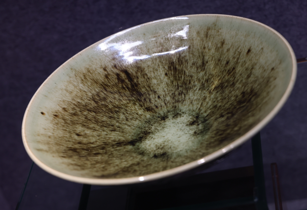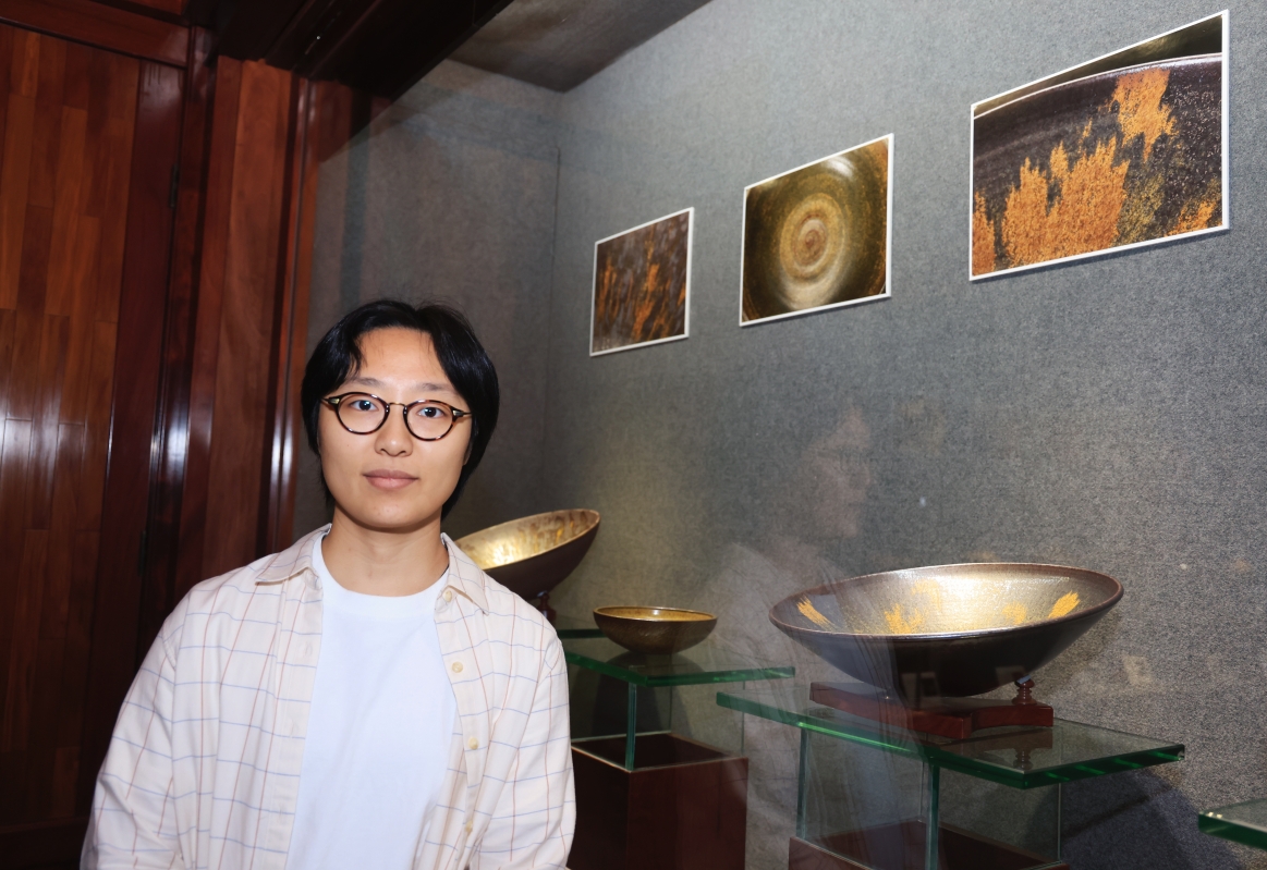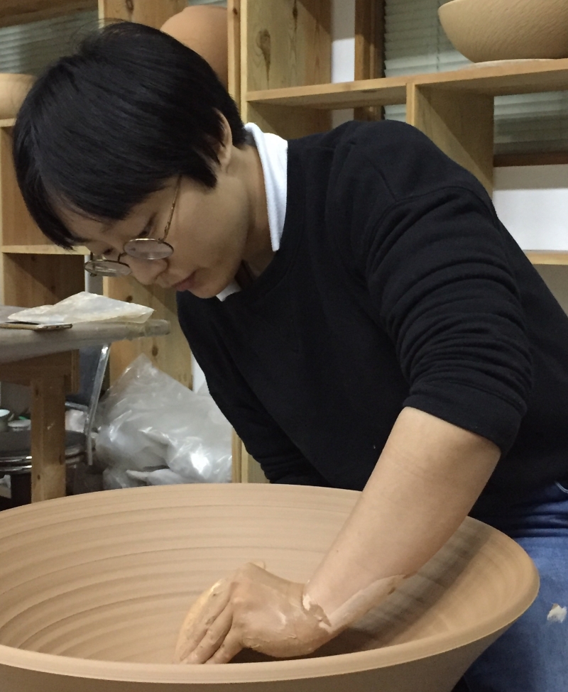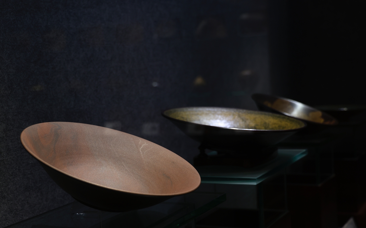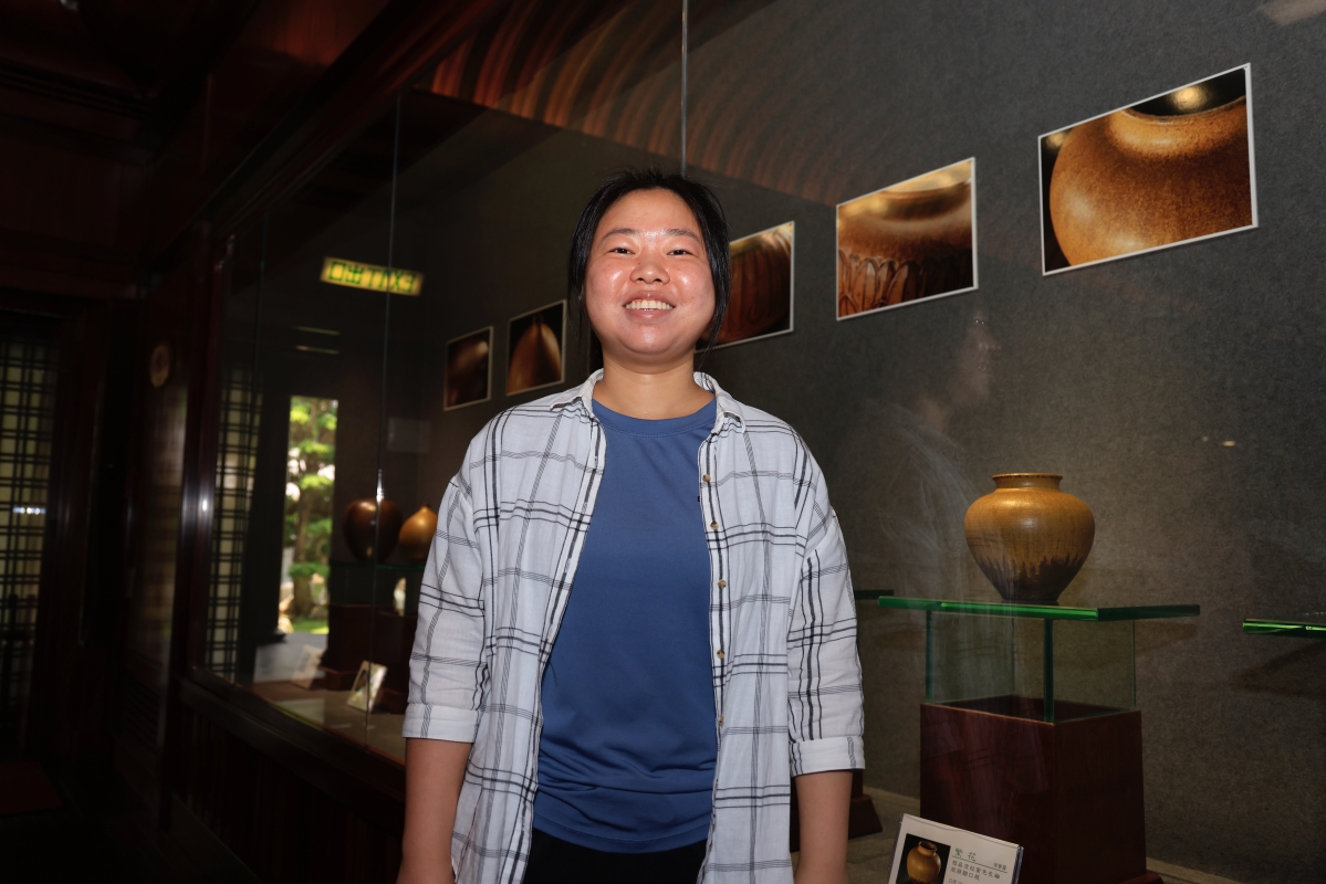 高峰對弟子的每一件作品都如數家珍 以有情之眼尋靈感,以對歷史的感悟制陶,最終作品呈獻出高峰的人生態度,“彩雲天”、“風雲頌”、“茶山窑之星”......,高峰的作品“名副其實”,夜空中的閃耀星光、千秋日月的笑顔、黃昏的雲星霞蔚都在陶瓷中即觸手可得。在他看來,萬物都是靈感,一件物品在他的眼中可呈現出多種不同的角度,他以此享受生活,忠於陶藝。 展廳中的作品,皆是運斤成風,很難想象半數以上作品為兩位年輕女性——高峰的弟子鮑祈茗、侯夢露所制。 “淬煉的五年”——鮑祈茗如此形容她學為陶工的日子。對於選擇做陶瓷的原因,鮑祈茗只用了簡單的五個字回答,“因為我喜歡。” 2014年鮑祈茗大學畢業後,她來到茶山窯,從清掃,以及淘洗泥料和釉料開始學起。對鮑祈茗來說,打掃衛生也是打掃自己的心,心無雜念則做出乾淨的器物,茶山窯中的雲霞、日落、秋林,看在眼裡,嵌進瓷中。