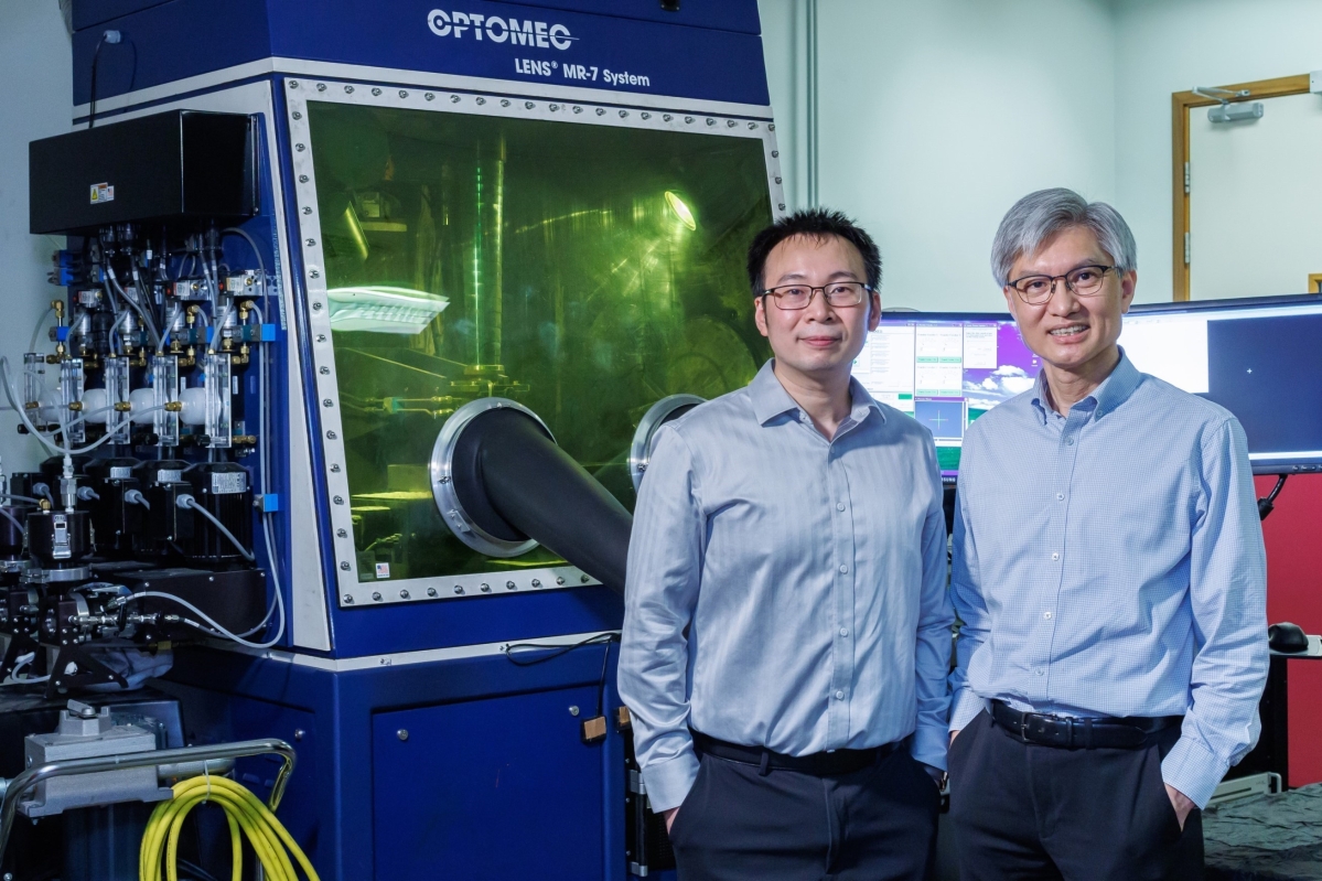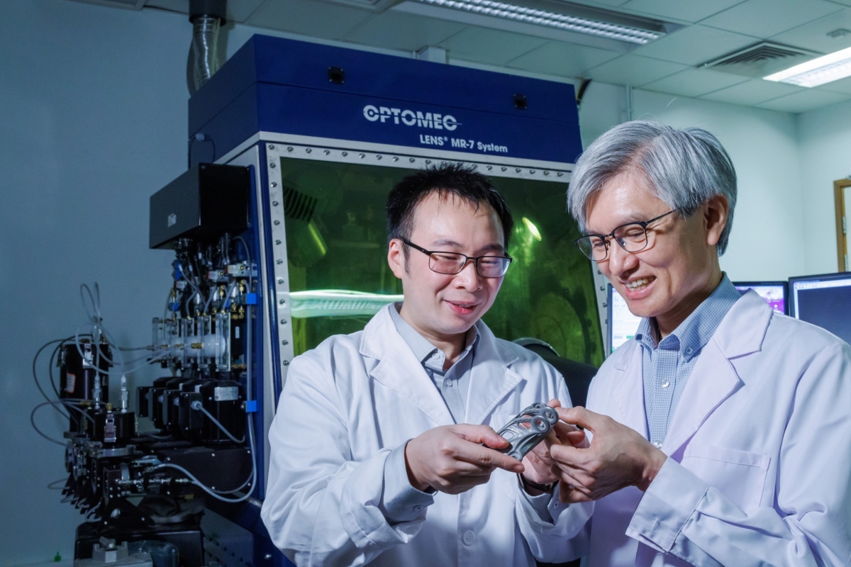 圖片來源:理工大學。圖示:理大工業及系統工程學系講座教授(製造工程)陳鏡昌(右)、助理教授陳子斌(左) 鈦合金是先進的輕質材料,常用於各種關鍵應用。研究團隊的創新發現開拓了3D打印製造鈦合金及其他金屬物料的潛在應用,有望降低成本、提高物料性能,同時積極推動可持續發展的循環經濟模式。 氧和鐵是兩種儲量富豐、價錢合理的元素,而且可以分別使α和β兩相鈦合金穩定和變強。研究團隊利用3D打印技術,成功生產了一種結合了氧和鐵的新型鈦合金“α–β Ti-O-Fe合金”,其特點是強度與塑性俱高,而且應用潛力優厚,能於航空航天、海洋工程、消費電子和生物醫療設備等領域發揮作用,有助積極推動可持續發展。與自1954年發明以來廣泛使用的基準材料“Ti-6AI-4V鈦合金”相比,研究團隊最新研發的新型鈦合金的機械性能更勝一籌,除了良好的延展性,強度也更高。