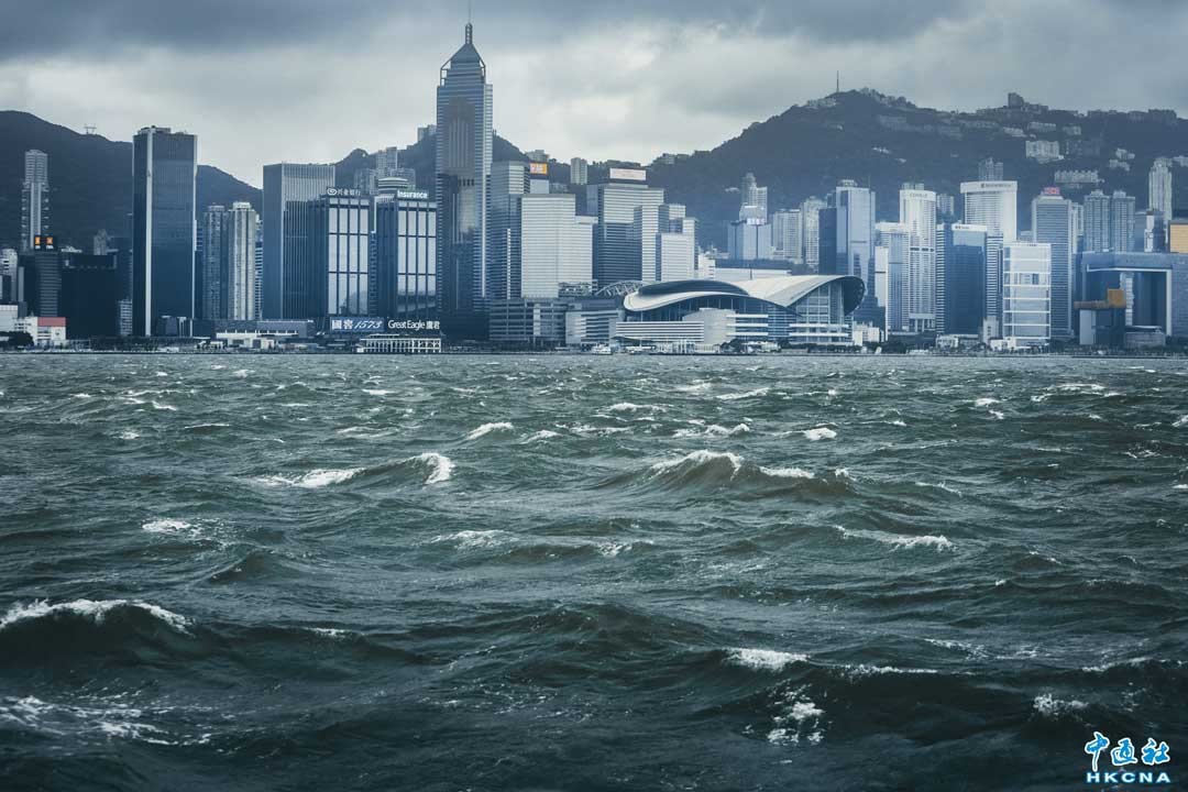 7月17日,颱風“泰利”吹襲香港,天文台於今天凌晨零時40分發出八號東北烈風或暴風信號,為今年首個八號風球。天文台隨後在今早6時40分發出八號東南烈風或暴風信號,以取代八號東北烈風或暴風信號,並至少維持至下午4時;教育局宣布所有日校今日停課。圖為當日香港維多利亞港風大浪大。 (香港中通社記者 謝光磊攝)