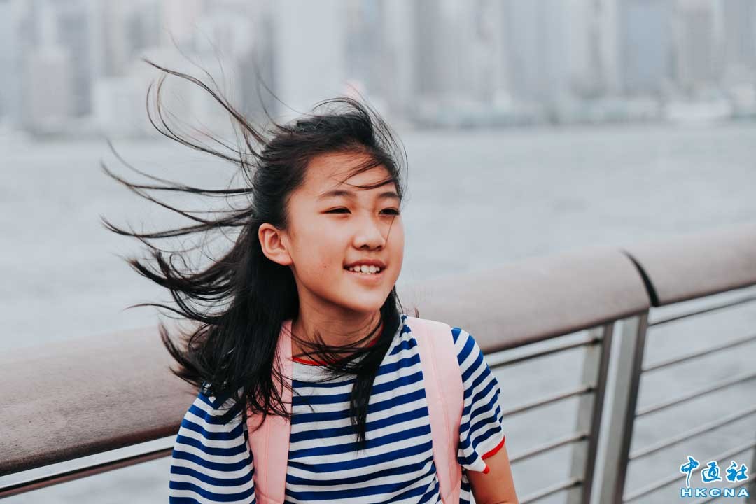 7月17日,香港市民於尖沙咀海濱“追風”。當日凌晨,香港天文台發出今年首個“八號風球”信號。 (香港中通社記者 許其皓攝)