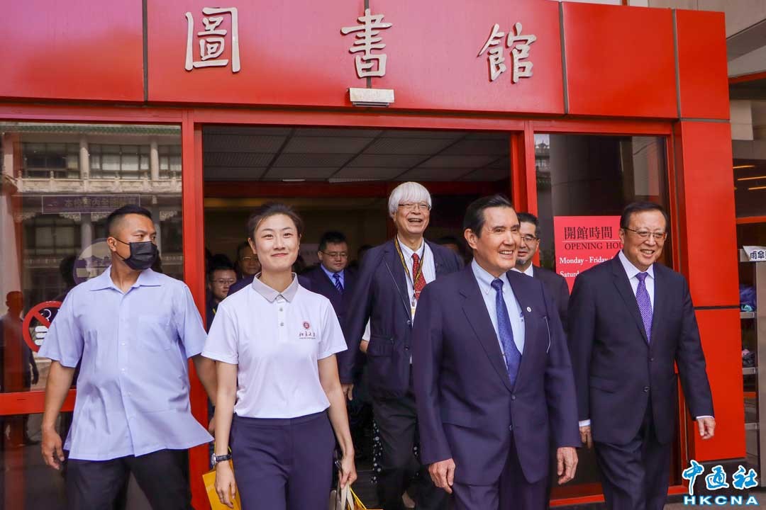 應馬英九文教基金會邀請,正在台灣參訪的大陸高校師生團,7月18日上午前往台北文化大學參訪,並進行音樂交流。文化大學中國音樂學系應屆畢業生陳德夫、陳佳憐與陸生代表、北京大學中文系學生陳凱迪同台表演古箏、琵琶;除了各自曲目表演外,最後合奏《滄海一聲笑》和《花好月圓》。陳凱迪表示,當琴聲響起,感覺到兩岸同根同源的文化紐帶。圖為馬英九陪同陸生參訪團造訪文化大學。香港中通社圖片