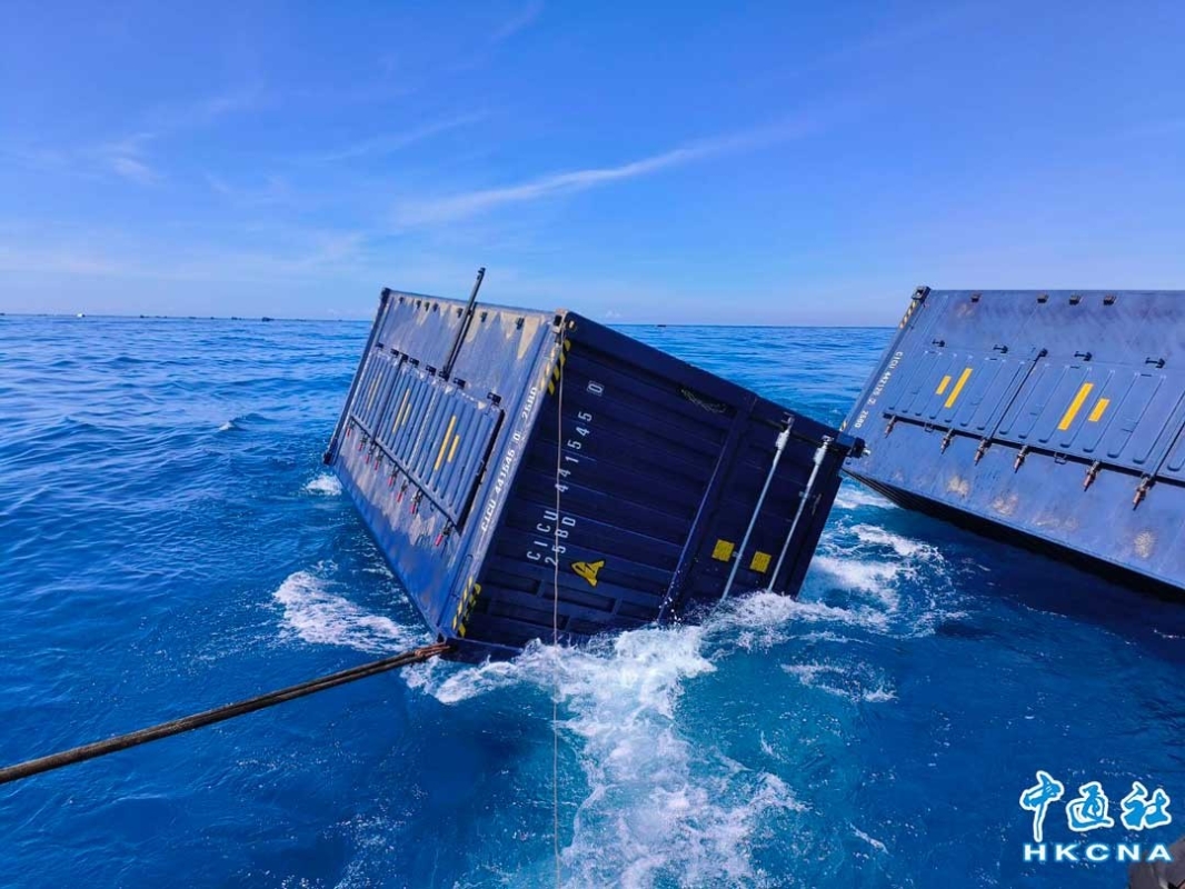 帛琉籍貨櫃船“天使輪”7月20日因不明原因船體進水傾斜,船長棄船,船上19名船員全數獲救,“天使輪”在7月21日凌晨0點19分已呈現半沉沒狀態,該船載有1349隻空貨櫃,有民眾目擊高雄港外海有數百空貨櫃在海面載浮載沉,由於上午海流往南,這些貨櫃恐怕會影響屏東外海航道,高雄港務分公司將派工作船拖貨櫃,並請往來船隻注意海況避免碰撞。香港中通社圖片