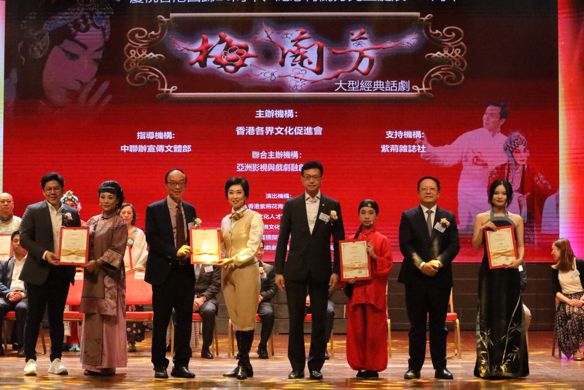 紀念梅蘭芳先生誕辰130周年 暨大型話劇《梅蘭芳》專場演出香港新聞網7月30日電(記者洪少葵)適逢香港回歸祖國26周年,紀念梅蘭芳先生誕辰130周年,香港各界文化促進會於7月29日至30日在香港北角新光劇院大劇場主辦大型舞台劇《梅蘭芳》專場演出。該劇由京劇藝術家梅葆玖生前與香港著名導演吳思遠聯合打造,著名影視劇導演、國家一級演員白永成領銜主演。以多媒體技術手段將話劇和京劇、舞蹈等藝術熔於一爐,展現一代京劇大師梅蘭芳的傳奇一生。演出所到之處好評如潮,並榮獲第十一屆中國戲劇節優秀劇目獎。 7月30日,香港署理文化體育及旅遊局局長劉震,全國人大代表、香港藝術發展局主席、立法會議員霍啟剛、全國政協委員、香港各界文化促進會主席涂輝龍、中聯辦宣傳文體部副部長張國義、立法會議員馬逢國等文化藝術界代表蒞臨主持開演儀式。 為紀念兩位梅派大師,上海保奇影視把梅葆玖先生生前與香港導演吳思遠先生聯合打造的大型經典舞台劇《梅蘭芳》搬上大區舞台,把一代京劇大師梅蘭芳先生的一生濃縮在方寸舞台上,深情的講述了近半個世紀時代變遷下的伶人往事。 香港各界文化促進會參與出品的大型經典舞台劇《梅蘭芳》由著名影視劇導演、國家一級演員白永成領銜主演。作為梅葆玖先生行外唯一的關門弟子,主演白永成表示:“梅葆玖老師生前多次表示希望把這個劇保留下來,傳承下去,我不能懈怠,何況現在已經是老師的遺願!我期待不同的觀眾都能在舞台劇《梅蘭芳》中找到自己的故事。因為觀看的同時不是解讀歷史,而是充滿著想像的戲劇空間。每位觀眾都可以有各自敘事的觀點,進而發展專屬於自己的戲劇文本”。 本次《梅蘭芳》複排呈現,也藉此回應梅蘭芳先生的“變才有進步”的創作理念,在舞台上,用巨大的LED螢幕和現代化冰屏,頻繁呈現著梅蘭芳先生不同時期的劇照和上世紀三十年代他出訪美國的實況記錄,用紀實影像呼應舞台表演,用誠心與誠意告慰兩位京劇大師,讓京劇藝術跨越了世代,在此召喚永續。追宗師梅蘭芳千古絕唱,憶大師梅葆玖禮花綻放。讓廣大觀眾近距離感受為中國與世界文化做出卓越貢獻的戲曲大師。