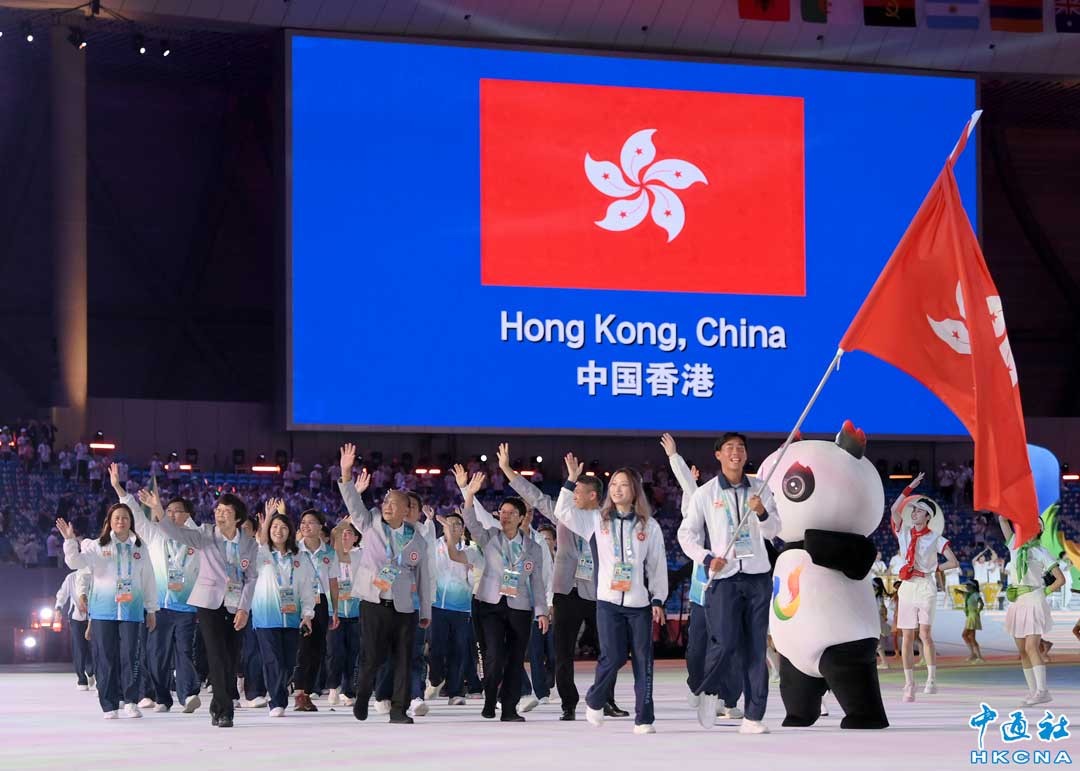 7月28日晚,第31屆世界大學生夏季運動會開幕式在四川成都舉行。圖為中國香港代表團入場。香港中通社圖片
