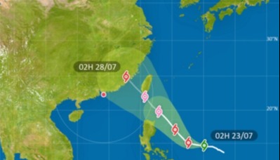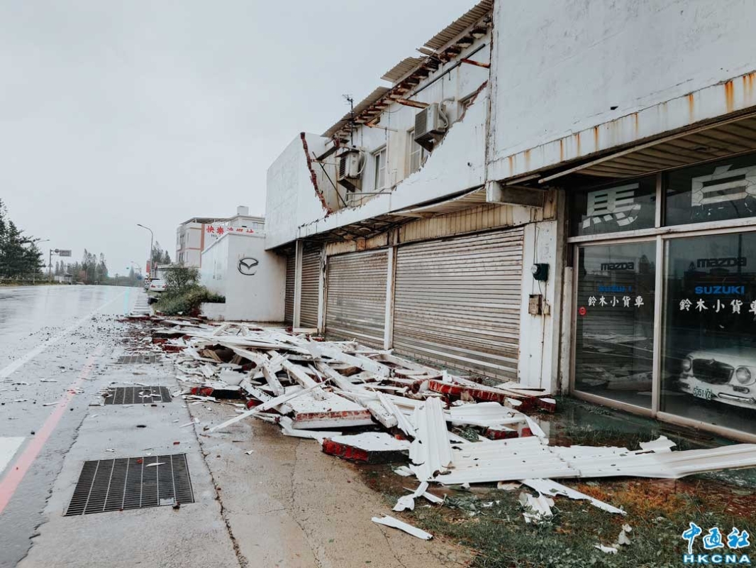 7月28日,颱風“杜蘇芮”為澎湖帶來強風豪雨,當地颳起了11級強風,將許多路樹、招牌吹倒,災情嚴重。香港中通社圖片