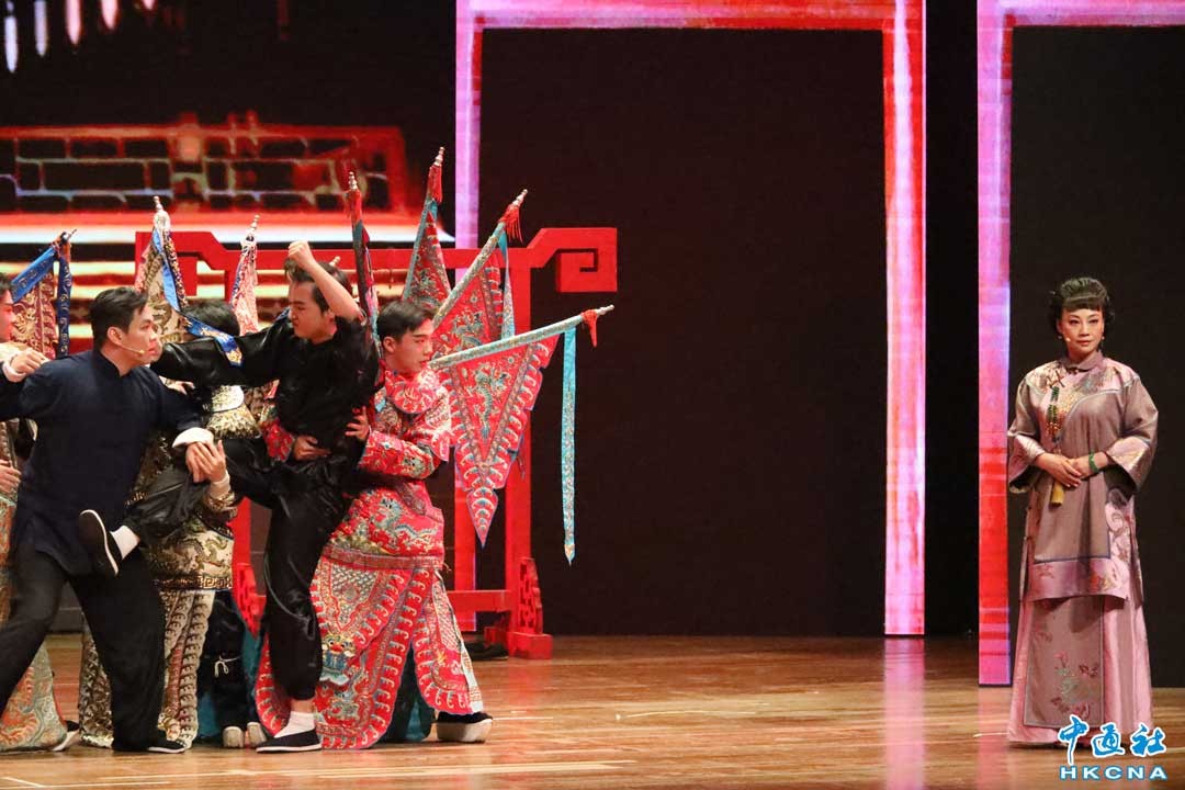 7月30日,紀念梅蘭芳先生誕辰130週年暨大型話劇《梅蘭芳》專場演出在香港新光戲院舉行。該劇由京劇藝術家梅葆玖生前與香港著名導演吳思遠聯合打造,著名影視劇導演、國家一級演員白永成領銜主演。以多媒體技術手段將話劇和京劇、舞蹈等藝術熔於一爐,展現一代京劇大師梅蘭芳的傳奇一生。 (香港中通社記者 洪少葵攝)