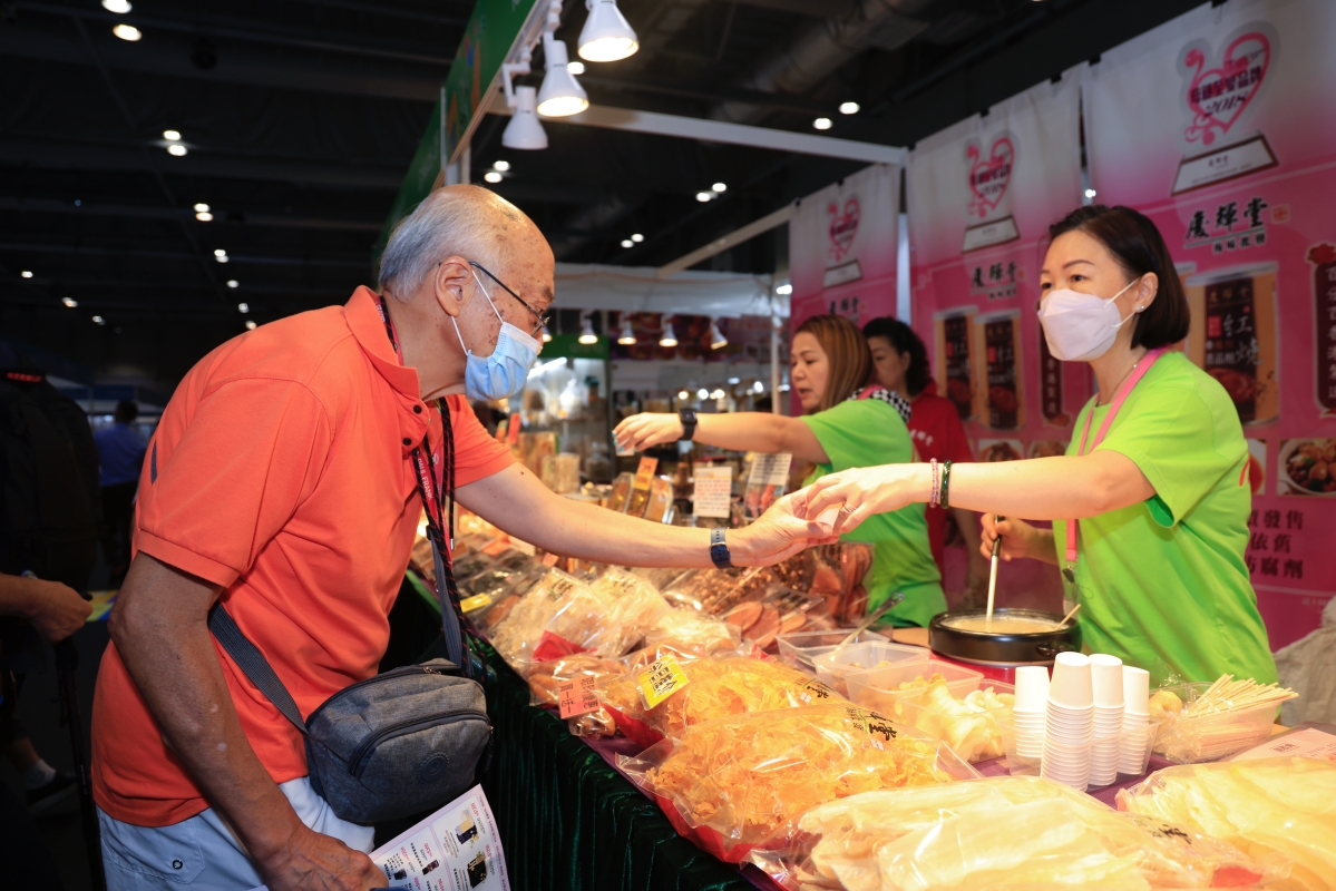 香港新聞網8月4日電(記者 曹文毓)香港中華廠商聯合會主辦的第三届“工展會購物節”8月4日起一連4日在亞洲博覽館舉行,會場設有近330個攤位,包括熟食、生活家品、服飾、攤位遊戲等,不少商家推出優惠方案以及設現場試食,吸引大批顧客。 是次購物節劃分為6大主題展區,由衣、食、住、行全面照顧不同年齡層的入場人士,且新增“為食·玩天地”主題區;入場人士可以一邊“掃街”、一邊參與免費攤位遊戲,此外大會每日還準備了1000份免費雪糕送給工展會APP的會員和入場人士,先到先得。