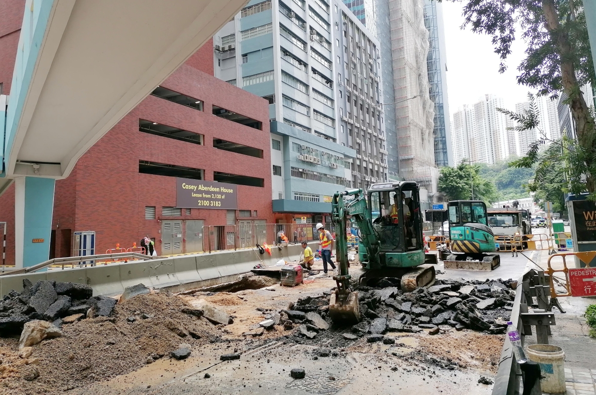 香港黃竹坑道食水管爆裂引致路陷(5-5)