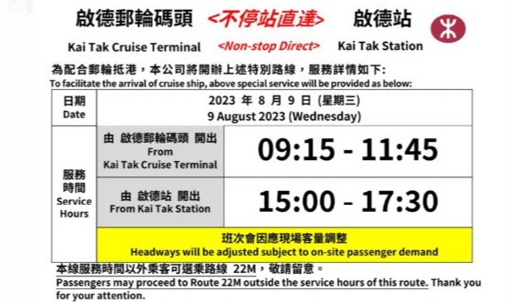 香港新聞網8月8日電 疫後多間郵輪公司重返香港,惟啟德郵輪碼頭附近交通配套不足,的士、巴士站均大排長龍。特區政府表示將加強碼頭營運商與的士業界的溝通,亦會探討開設另一條前往尖沙咀的特別巴士路線,考慮增設非專營巴士服務,會在下一艘大型郵輪訪港前落實相關細節。