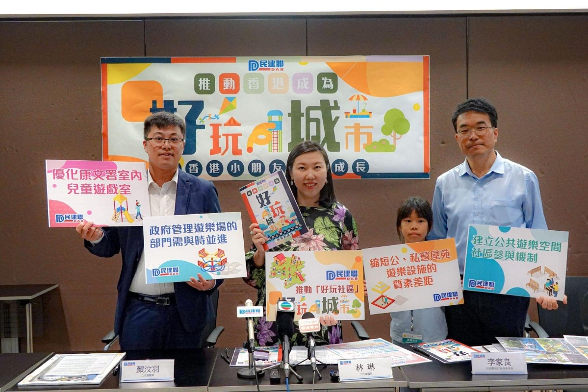 香港民建聯發布《推動香港成為“好玩城市”》政策倡議書香港新聞網8月9日電 香港民建聯立法會議員林琳、顏汶羽, 及民建聯執行委員會委員李家良於 8 月 9 日發表《推動香港成為“好玩城市”》政策倡議書,希望政府在政策層面優化對香港公共遊樂設施規劃、管理、社區參與等,以完善現時公共遊樂設施不足之處。 “好玩城市”指是推動成人支持小朋友遊戲,讓小朋友在成長的周圍都有遊戲的出現,一來讓兒童透過遊戲可以學習創造和自主,激發創造力和獨立思考能力,對孩子們的身心發展皆有益處;二來將城市環境改造成一個更宜居、更優質和更有活力的地方,並推動城市的設計、娛樂產業發展,提升居民的生活質素。
