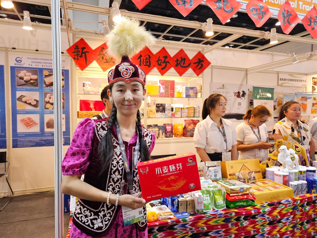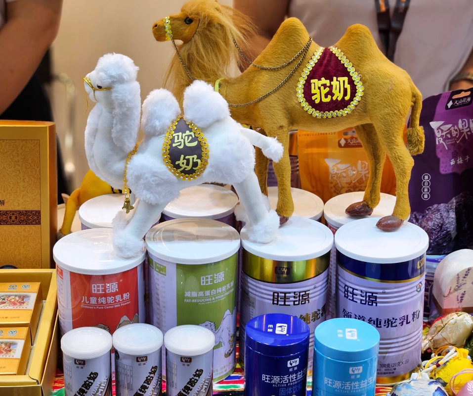 新疆特色駱駝奶製品。(香港中通社記者 黃璇攝) 中國農業國家展團組展方向香港新聞網介紹,農業農村部農業貿易促進中心(下稱“貿促中心”)是農業農村部直屬事業單位,此次活動由農業農村部國際合作司、市場與信息化司指導,貿促中心組織中國農業國家展團來港參展。組展方透露,今年春節後就開始佈局參展,並向各個省(區、市)徵集參展企業,再由貿促中心進行篩選。