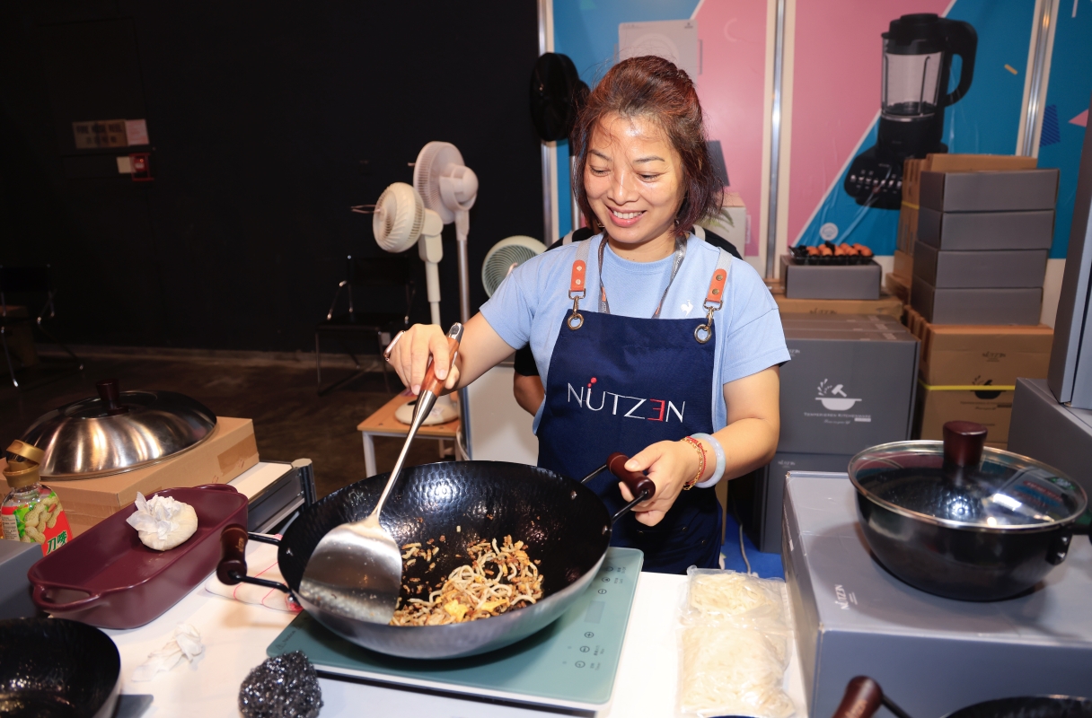 商戶以現場烹飪展示厨具
