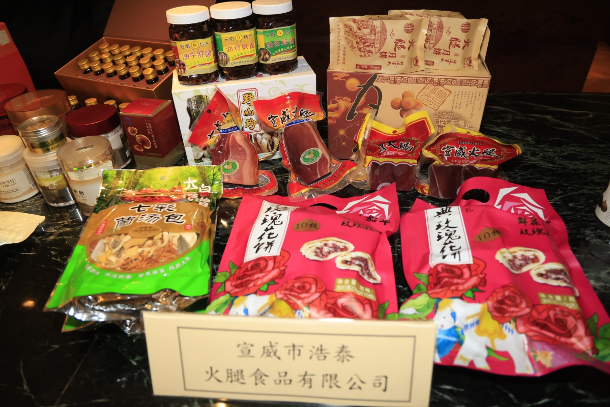 現場展示雲南的多個食品領域,包括茶葉、火腿、堅果、糖果、米線、榖物加工、特色農副食品等
