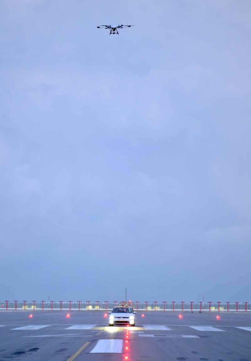 民航處和中國民用航空局飛行校驗中心專家及相關技術人員為測試作準備。 安裝在機場跑道的儀表着陸系統及跑道地面燈,為飛行員降落提供引導訊號和目視引導。香港國際機場的飛行校驗一直由國際認可的中國民用航空局飛行校驗中心的校驗飛機及專業人員執行及驗證結果。要有效率地執行飛行校驗而盡量減少影響香港國際機場和航空交通管制的繁忙運作極具挑戰性。為提升執行飛行校驗的效率,民航處主動研究創新方案,探索利用小型無人機執行部分飛行校驗的可行性。一般而言,相對於傳統的校驗飛機,利用小型無人機在跑道上進行部分飛行校驗,在執行時更具效率、飛行調度上更靈活及更環保。