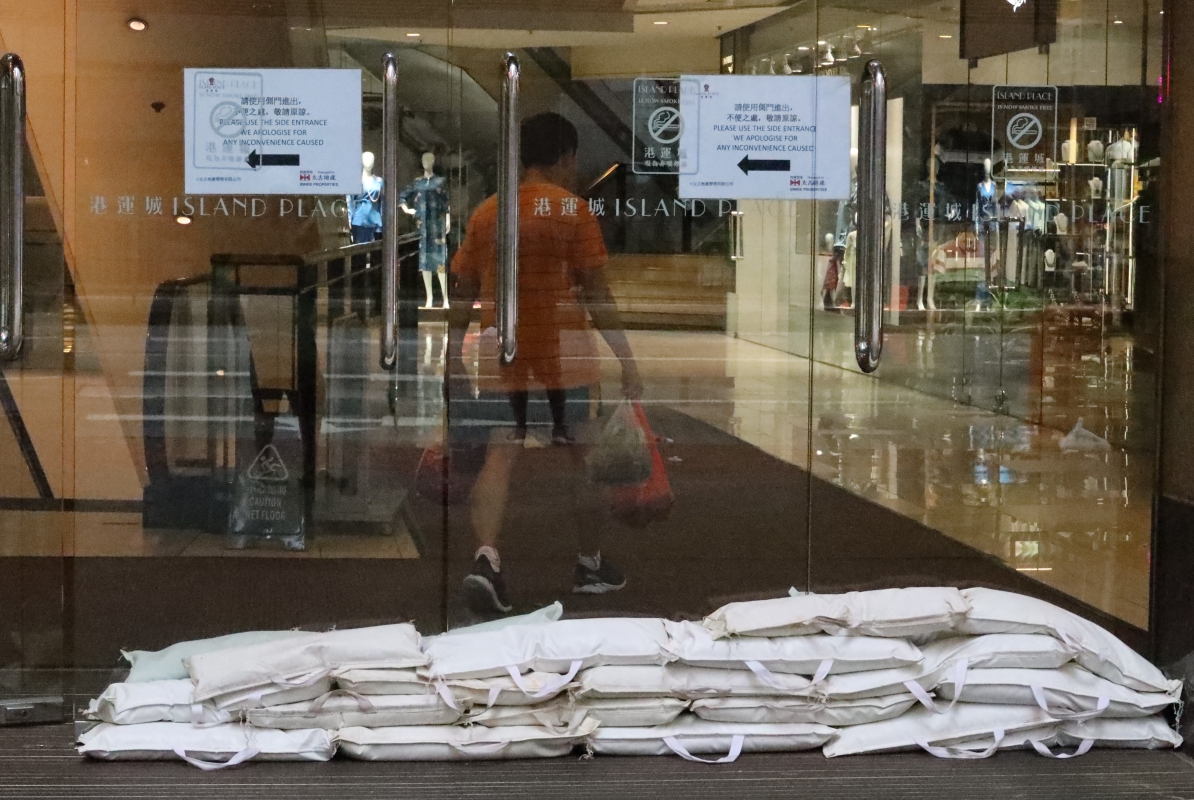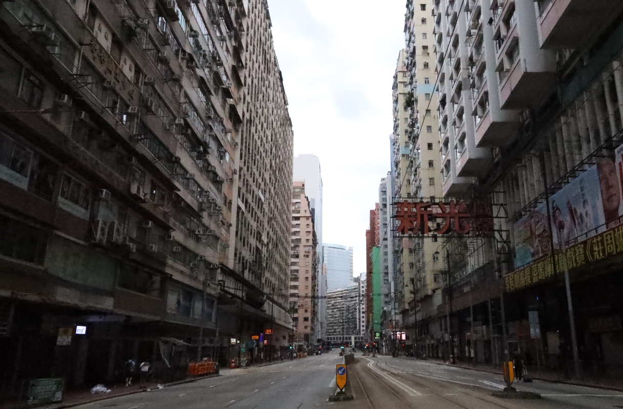八號強風信號下,香港街道一片寧靜