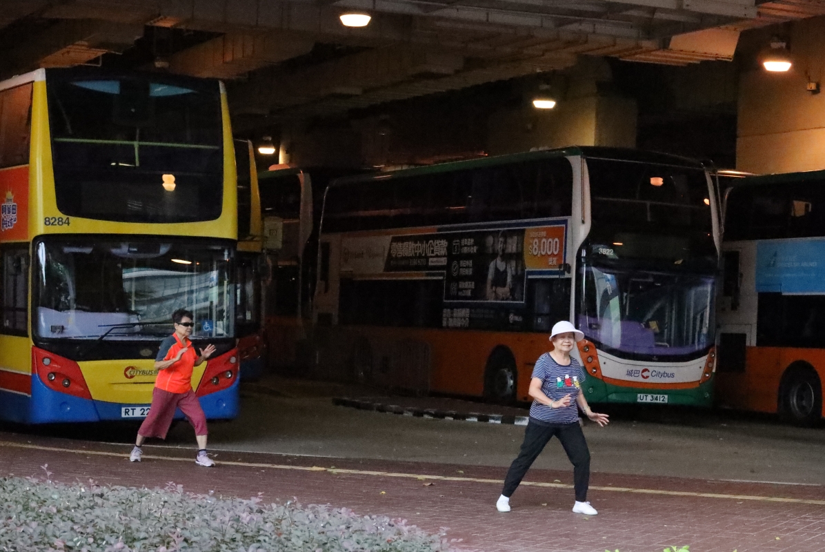 在北角碼頭有市民如常出來晨運