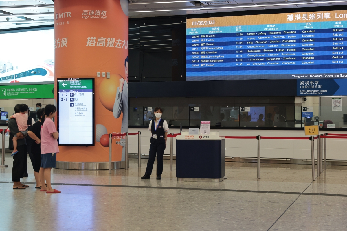 往來香港西九龍站及內地的高速鐵路列車服務暫停,期間所有列車班次取消。