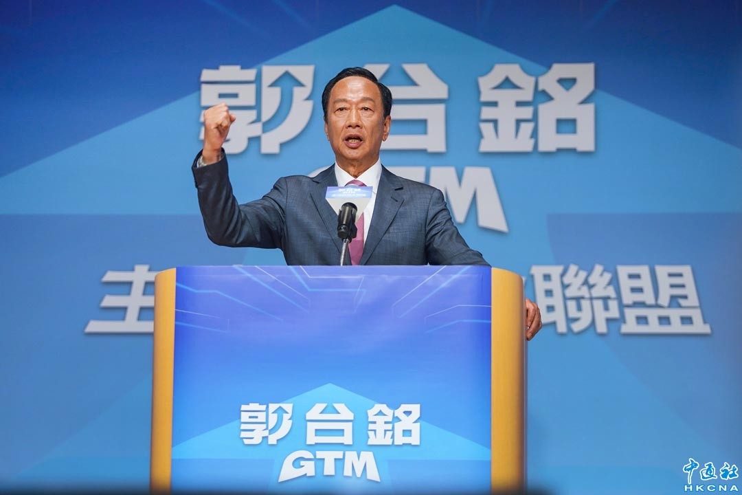 8月28日,鴻海科技集團創辦人郭台銘在台北召開“主流民意大聯盟”記者會,宣布參選台灣地區領導人。 香港中通社圖片