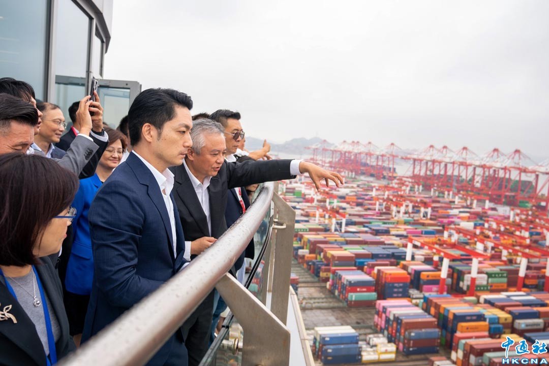 8月29日,蔣萬安參觀上海洋山港。此次,台灣台北市市長蔣萬安率團於8月29日-31日在上海參加“2023上海台北城市論壇”,並進行市政交流參訪。 香港中通社圖片