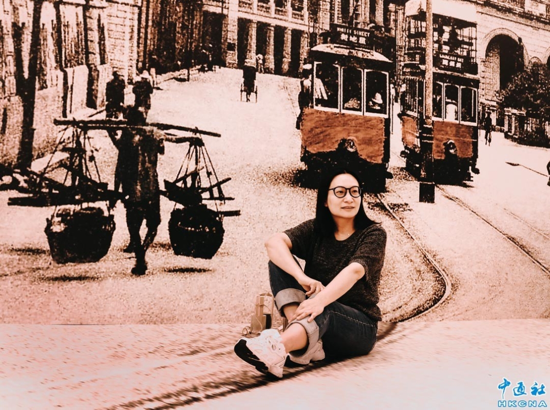 香港工聯會於8月31日至9月3日一連四天在香港中央圖書館展覽館舉辦“奮勇共進新時代 服務市民走在前 工聯會75周年歷史文物圖片展”,展出過往75年來的愛國工運歷程,亦有不少極具歷史價值和意義的文物實物展出,同時加入3D場景再現和AR元素,讓市民在參觀之餘也能進行互動打卡。圖為市民在3D場景再現打卡。(香港中通社記者 曹文毓攝)