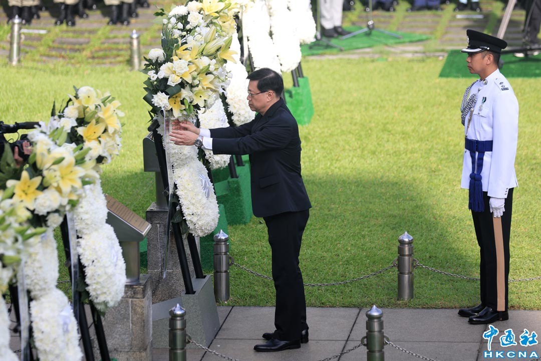 9月3日,香港特區政府在大會堂紀念花園舉行中國人民抗日戰爭勝利紀念日儀式,香港特區行政長官李家超出席儀式。(香港中通社記者 許其皓攝)