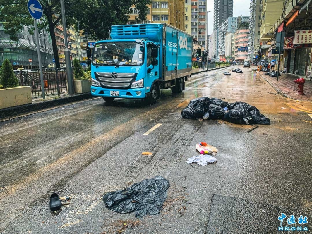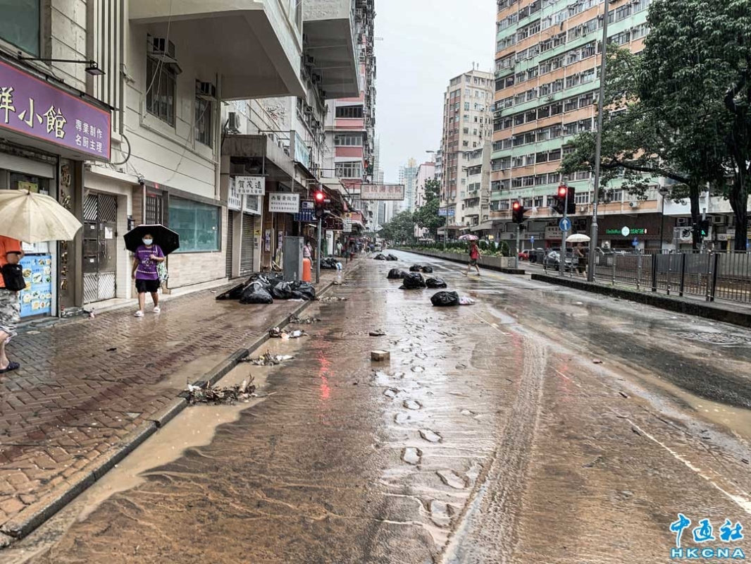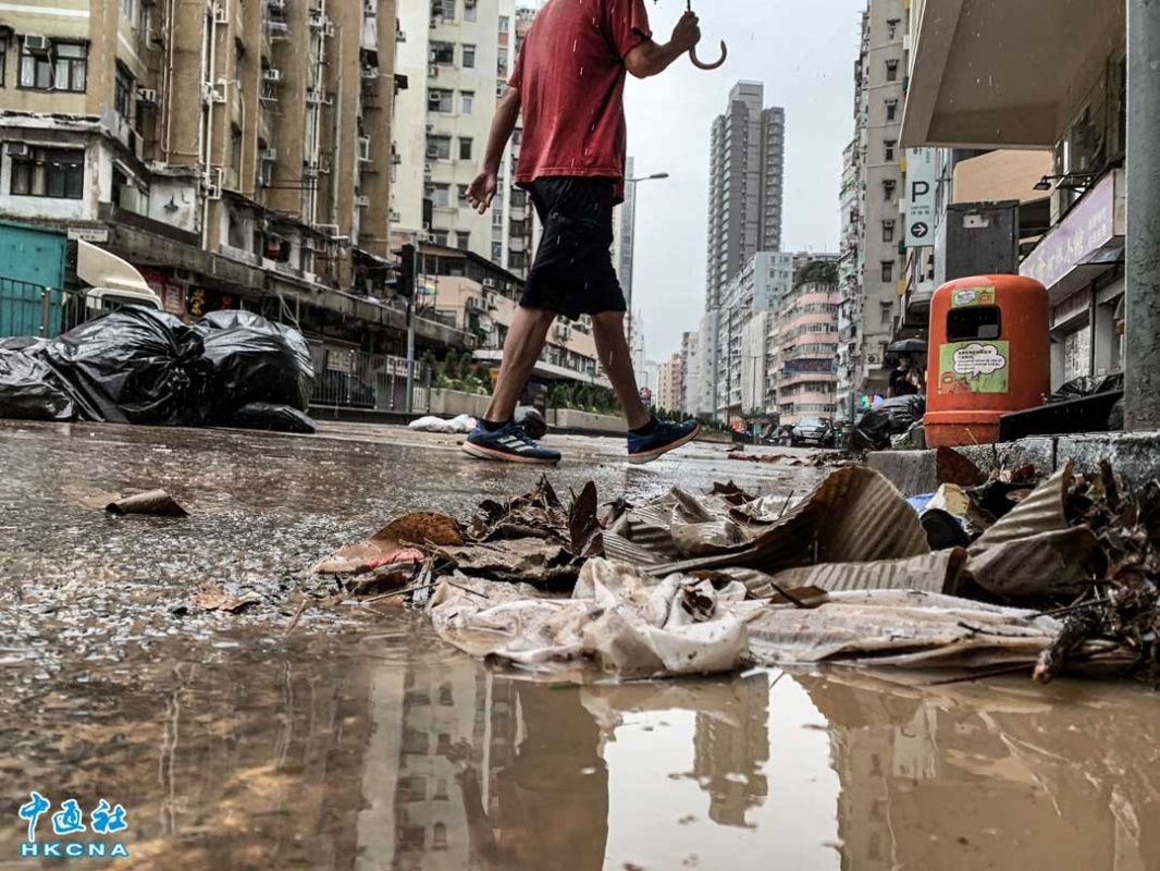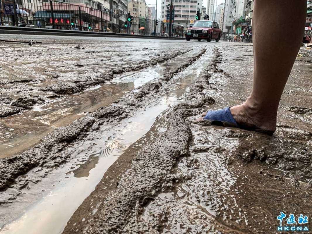 香港新聞網9月8日電(記者 徐文峰)9月8日,香港遭受黑雨肆虐後,香港深水埗街頭滿佈泥濘,市民需一腳深一腳淺地小心出行。大埔道往旺角方向,垃圾被沖到馬路上,佔據了一條行車線,雙車道變成一車道。 9月7日晚,香港遭遇自有紀錄以來最大暴雨,一小時內降下158.1毫米的雨量,是1884年以來的最高紀錄。 受台風“海葵”殘餘影響,香港首次發出“極端情況”警告,並持續“黑雨”信號逾16小時。香港天文台過去24小時錄逾600毫米雨量,等同全年雨量約四分之一。