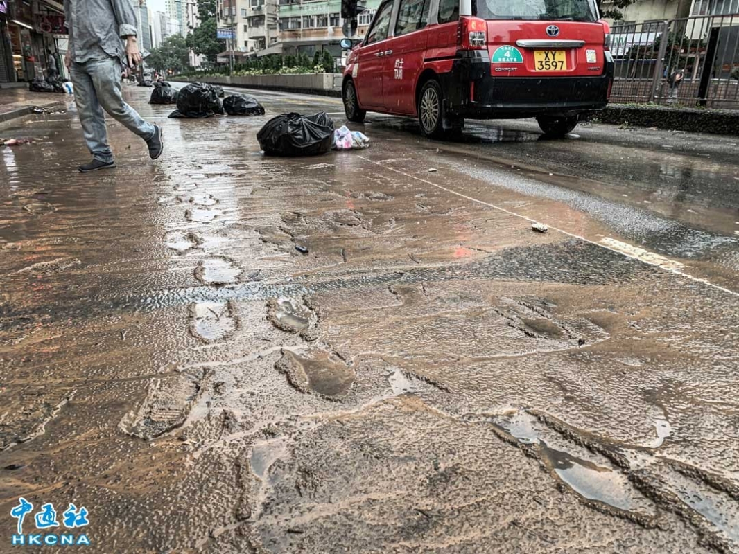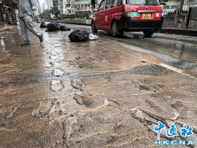 深水埗街頭滿佈泥濘