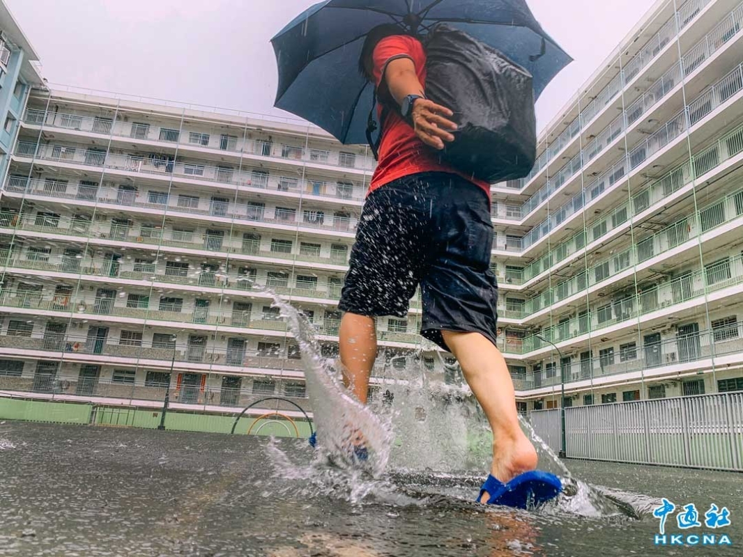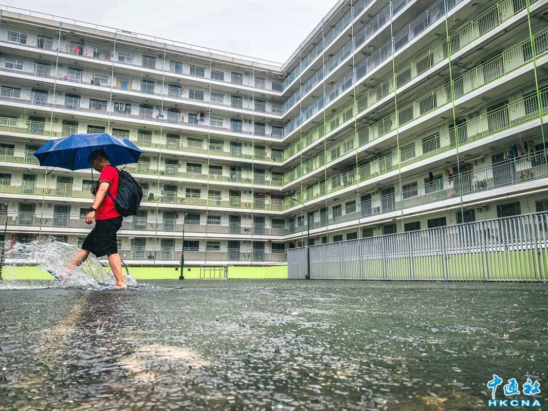 深水埗藍山邨纲红打卡地水深已过脚背,市民涉水出行