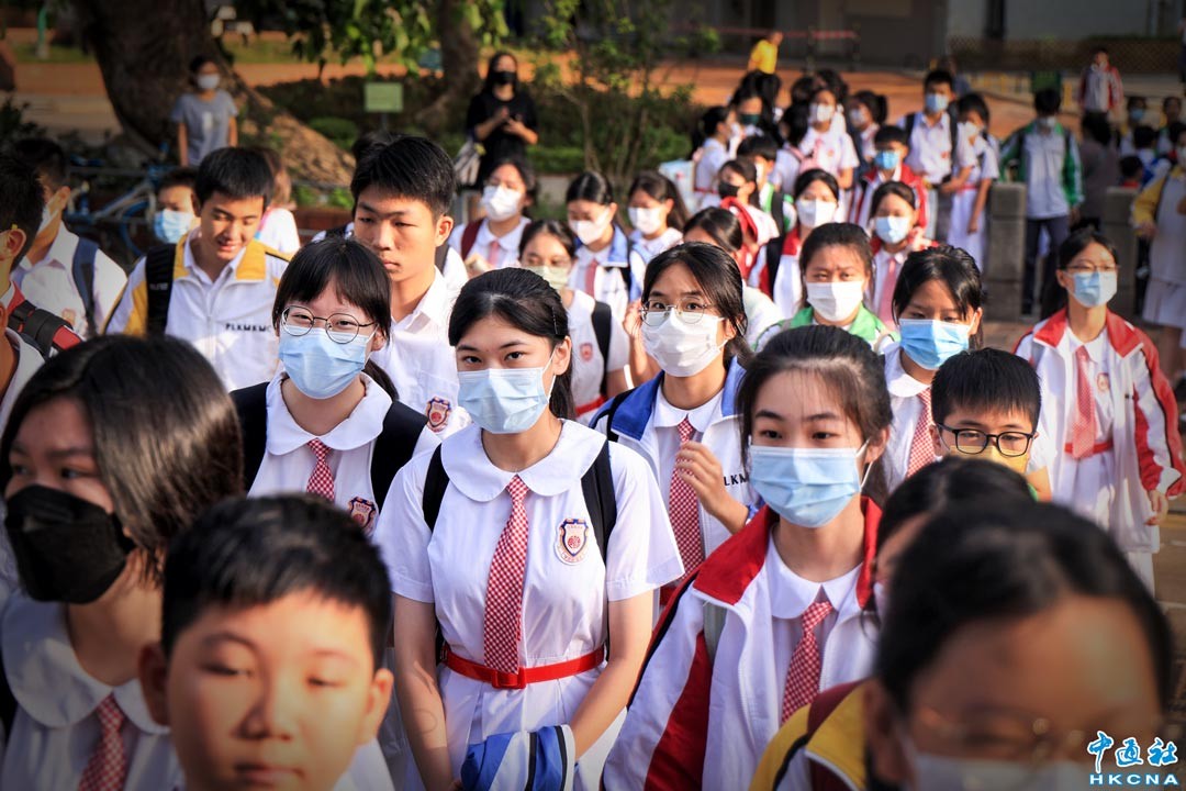 9月4日,香港中小學及幼稚園迎來開學日,大批學生早早返校上課迎接新學年。(香港中通社記者 許其皓攝)