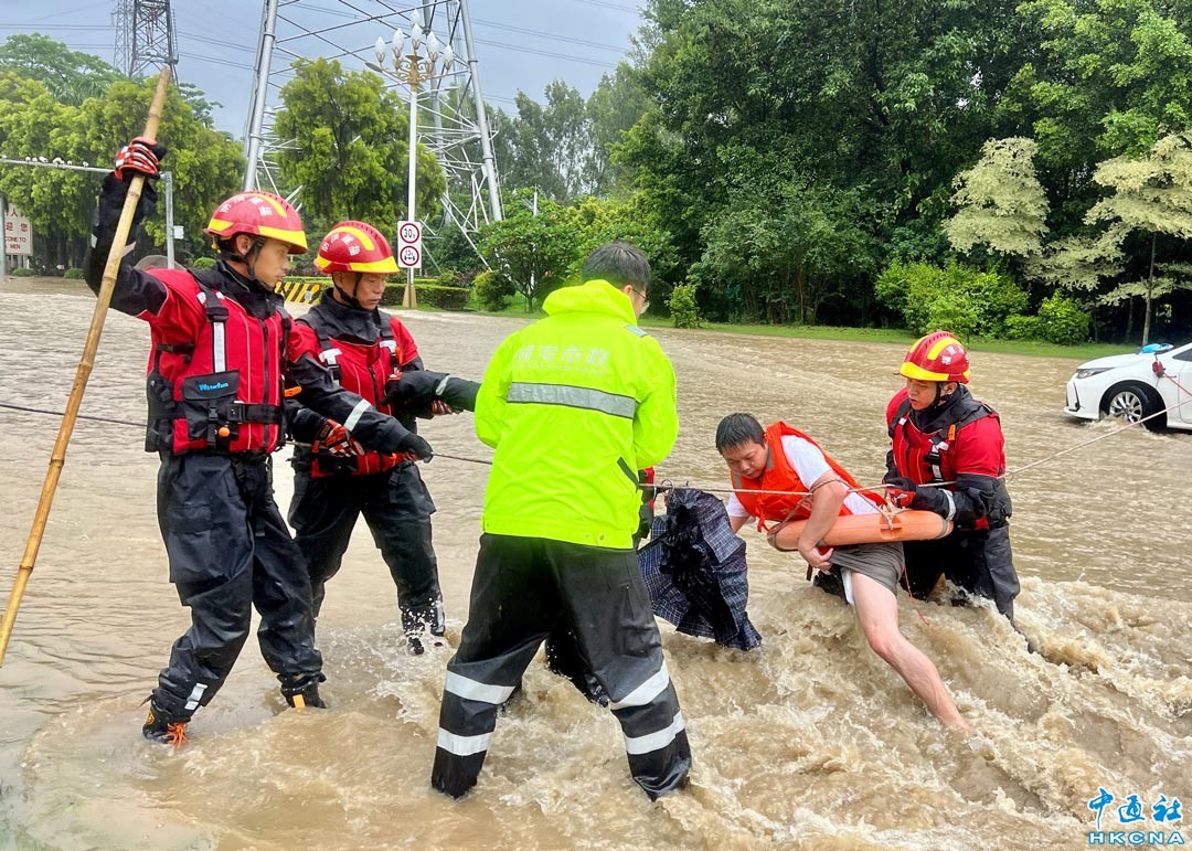 9月5日,受颱風“海葵”帶來的強降雨影響,福建漳州和寧德部分低窪地段出現嚴重積水。福建消防第一時間組織救援力量緊急轉移受困人員。圖為漳州消防救援人員轉移受困人員。 香港中通社圖片