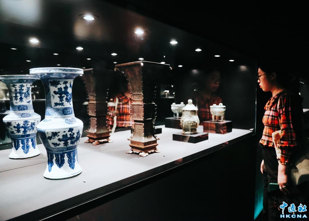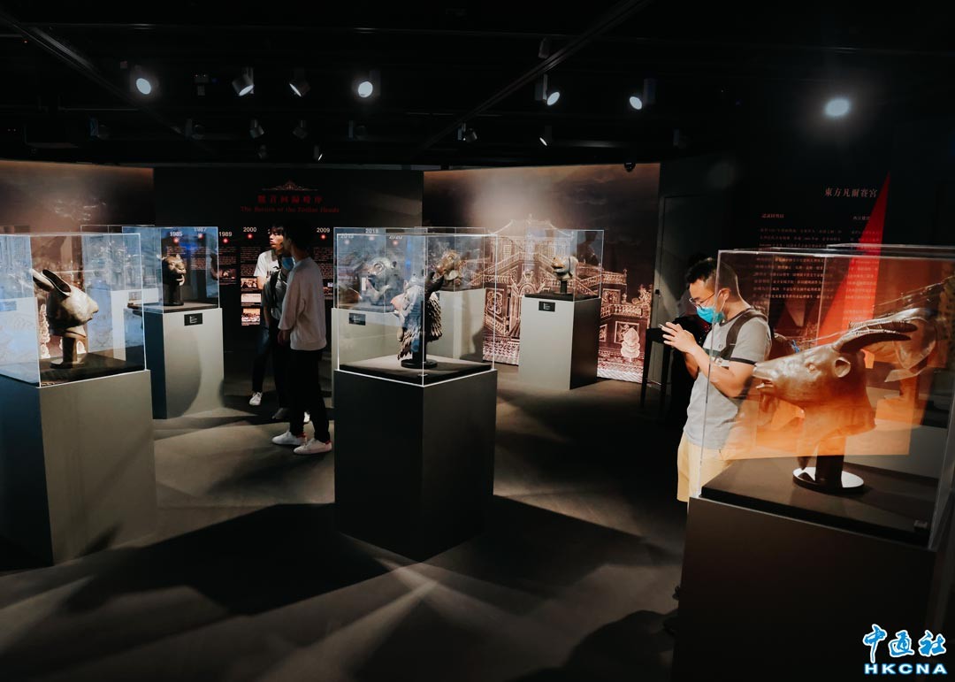 為慶祝香港回歸祖國二十六周年,“盛世聚首 天寶芳華:圓明園獸首暨文物展”在香港城市大學般哥展覽館呈獻。第二期展覽由9月5日至11月30日開放,展出電影《十二生肖》全套獸首雕塑以及早期中國青銅禮器等重要珍寶。場館内設置各種沉浸式體驗,擴增實境(AR)、混合實境 (MR)、人工智能(AI)技術和其他創新的互動手法,讓觀眾得以動態方式理解世界文化遺產的保育、藝術科技和歷史變遷。(香港中通社記者 曹文毓攝)