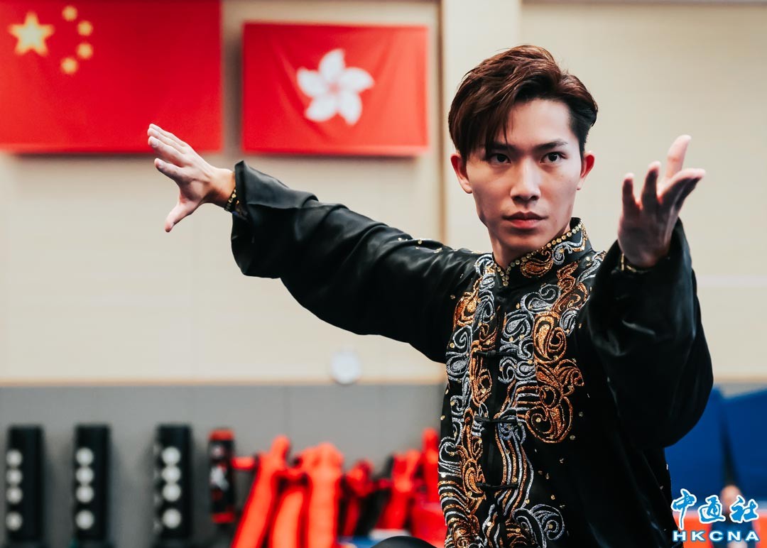 9月7日,中國香港武術聯會舉辦記者會,港隊選手分享備戰杭州亞運情況。港隊今次派7名運動員出戰,分別參加太極拳、太極劍、南拳、南棍、長拳等項目。圖為在成都世大運太極劍項目奪金的許得恩,他表示,最大的對手永遠是自己。(香港中通社記者 謝光磊攝)