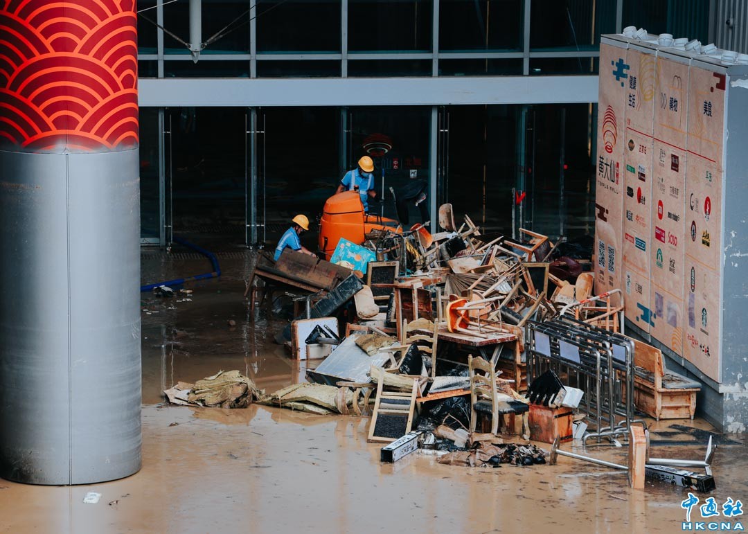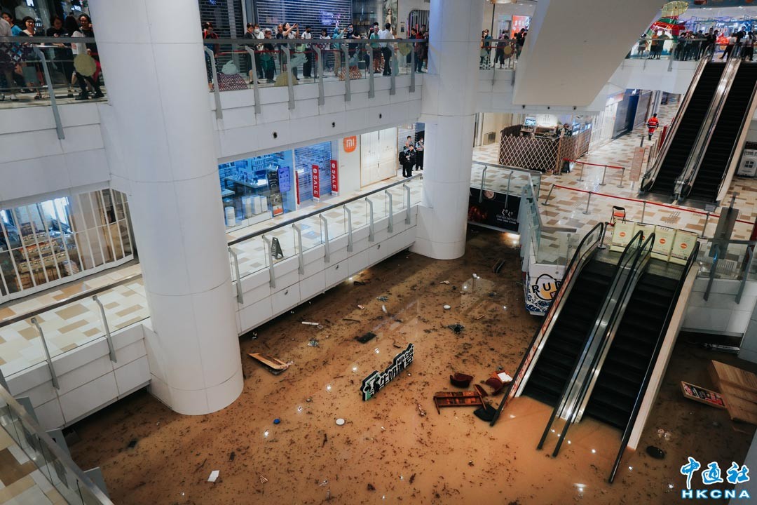 9月8日,香港黃大仙中心北館地下全層被淹沒。香港遭遇自有紀錄以來最大暴雨,香港受颱風低壓槽影響降暴雨,多區水浸。天文台於9月7日晚11時05分發出黑色暴雨警告,特區政府9月8日早上啟動“極端情況”安排。(香港中通社記者 許其皓攝)