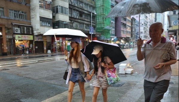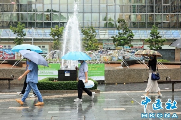 9月8日清晨,香港市民冒著滂沱大雨出行。香港遭遇自有紀錄以來最大暴雨,天文台7日晚11時05分發出今年首個黑色暴雨警告信號。 特區政府8日早啟動“極端情況”安排,指香港出現廣泛地區水浸,以及公共交通嚴重受阻的極端情況,所有日校今日停課。 同時提醒雇主,除必要人員外,不應要求雇員返回工作地點上班。 (香港中通社記者 洪少葵攝)