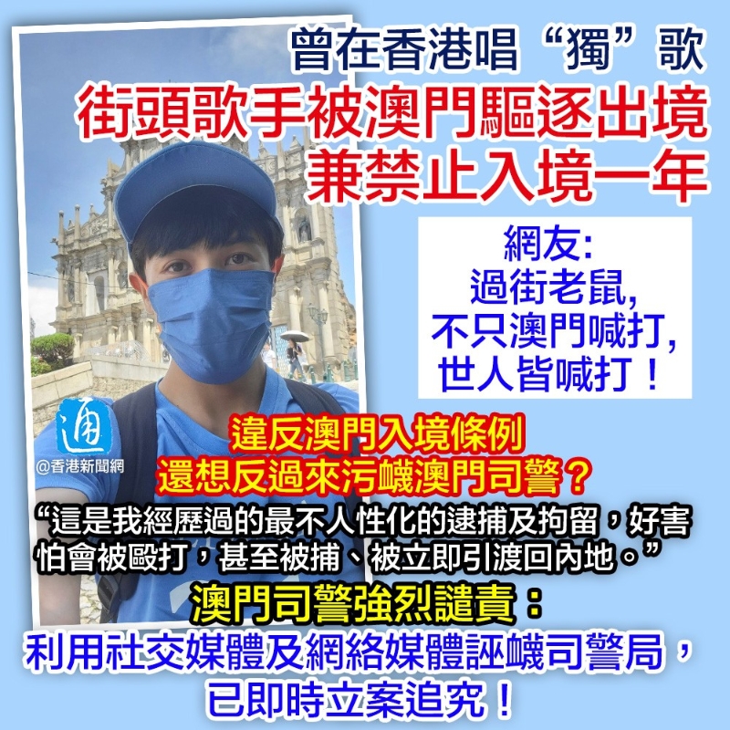 自作孽!曾在香港唱“獨”歌,街頭歌手被澳門驅逐兼禁止入境一年分享到: