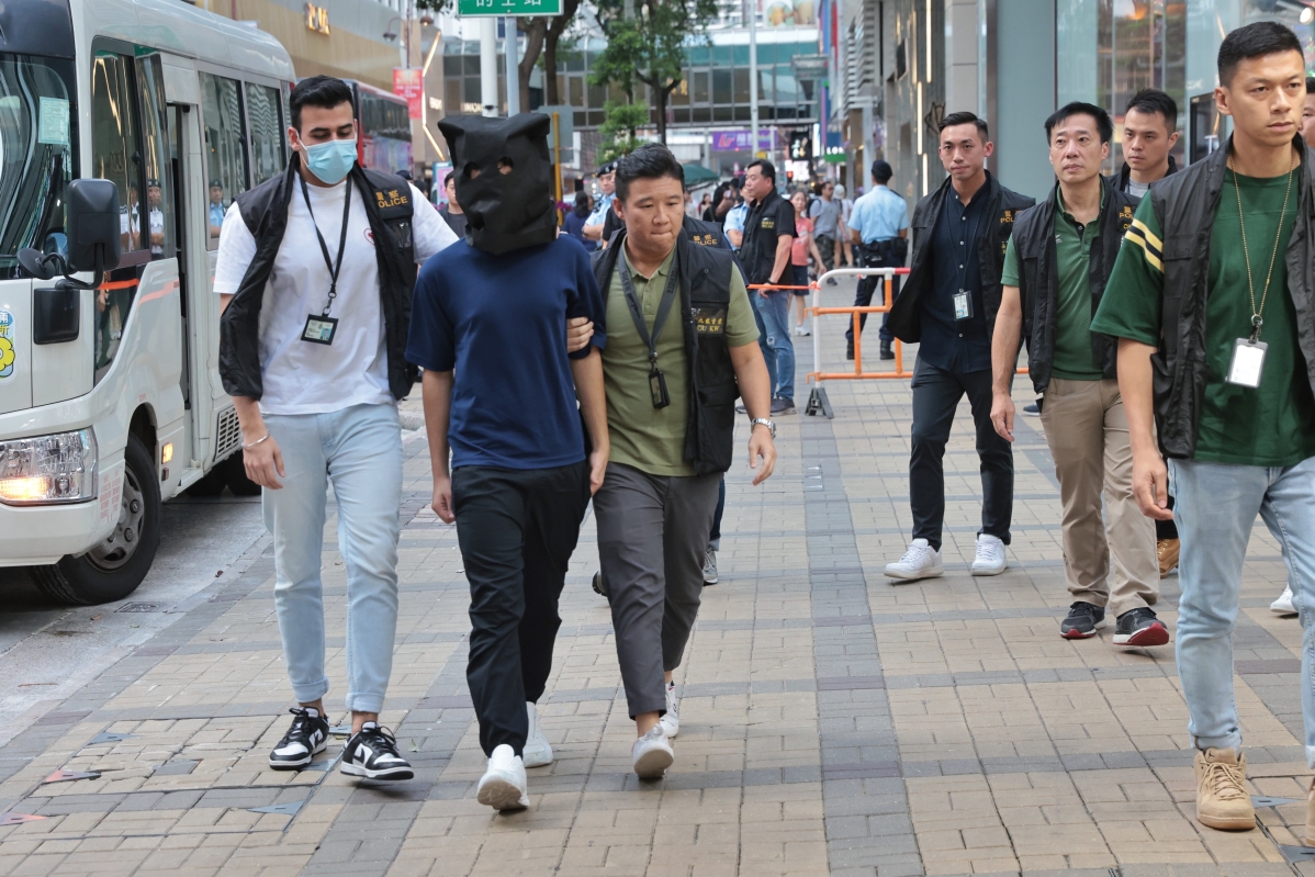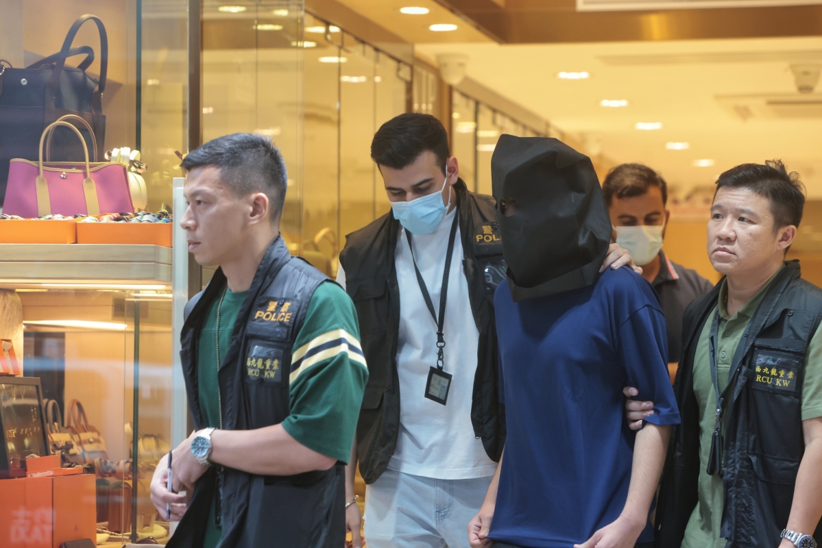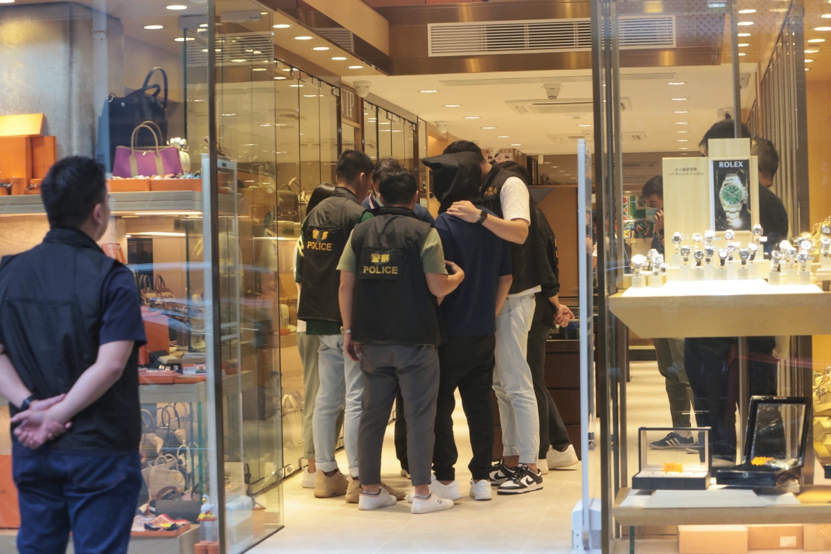 警方押解疑犯到尖沙咀表行劫案現場重組案情