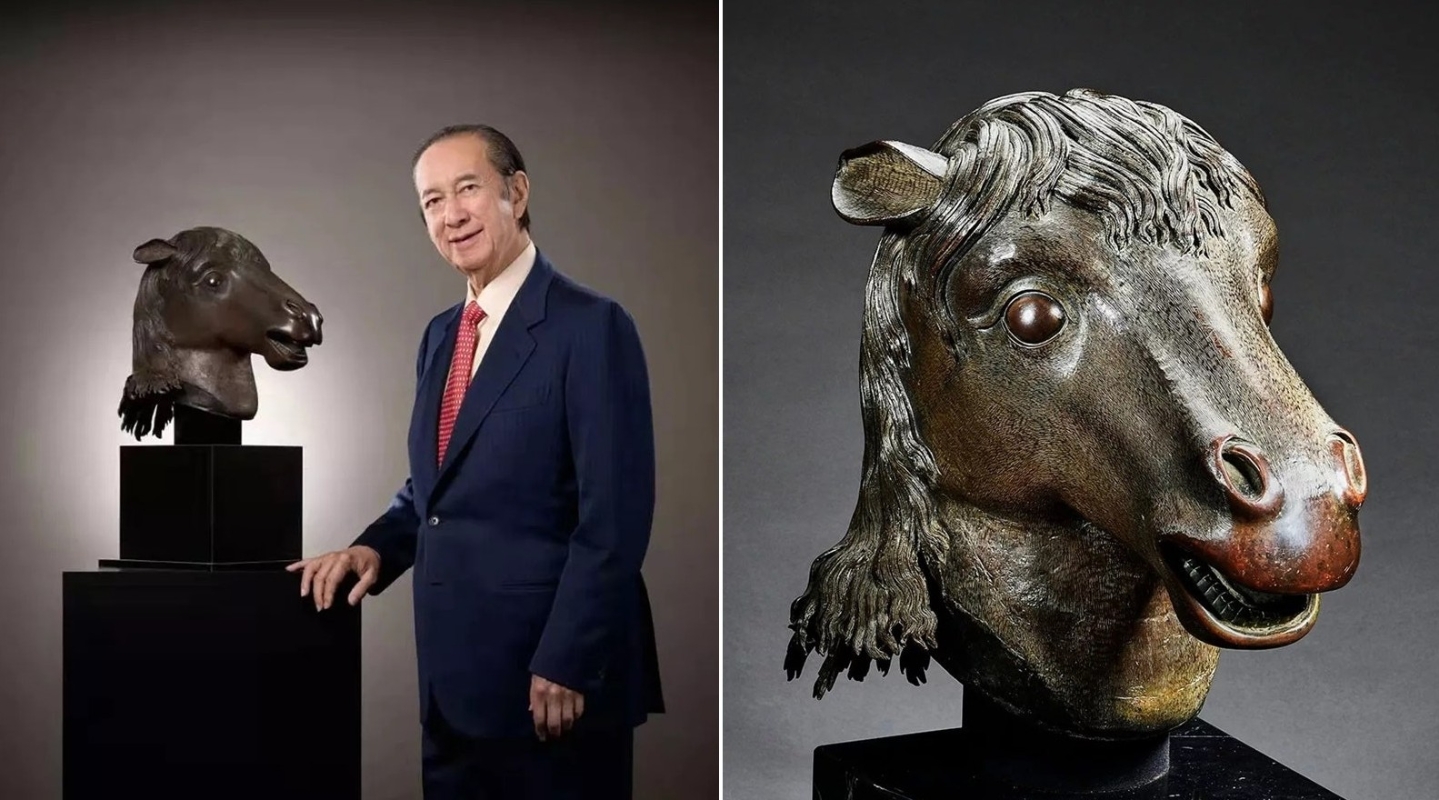 何鴻燊與馬首銅像的合照。(資料圖片) 今年夏天,香港城市大學(城大)、香港中旅集團聯合保利藝術博物館舉辦“盛世聚首 天寶芳華:圓明園獸首暨文物展”,第一期展出原屹立於圓明園海晏堂前的虎首、豬首、牛首、猴首四尊銅像,這也是繼2004年後第二次4尊獸首銅像同時在港展出。四尊獸首銅像原物的展出,吸引了大批觀眾前往參觀。展覽現正舉行第二期,主要展出影星成龍捐贈新加坡亞洲文明博物館的全套十二生肖獸首雕塑復原模型,它們各自獨立被擺放在玻璃櫃內,讓觀眾恍如置身清代圓明園海晏堂。