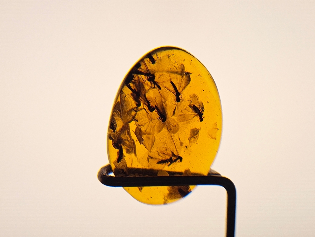 一群白蟻被困在琥珀內,牠們的翅膀清晰可見。(香港中通社記者 黃璇攝)