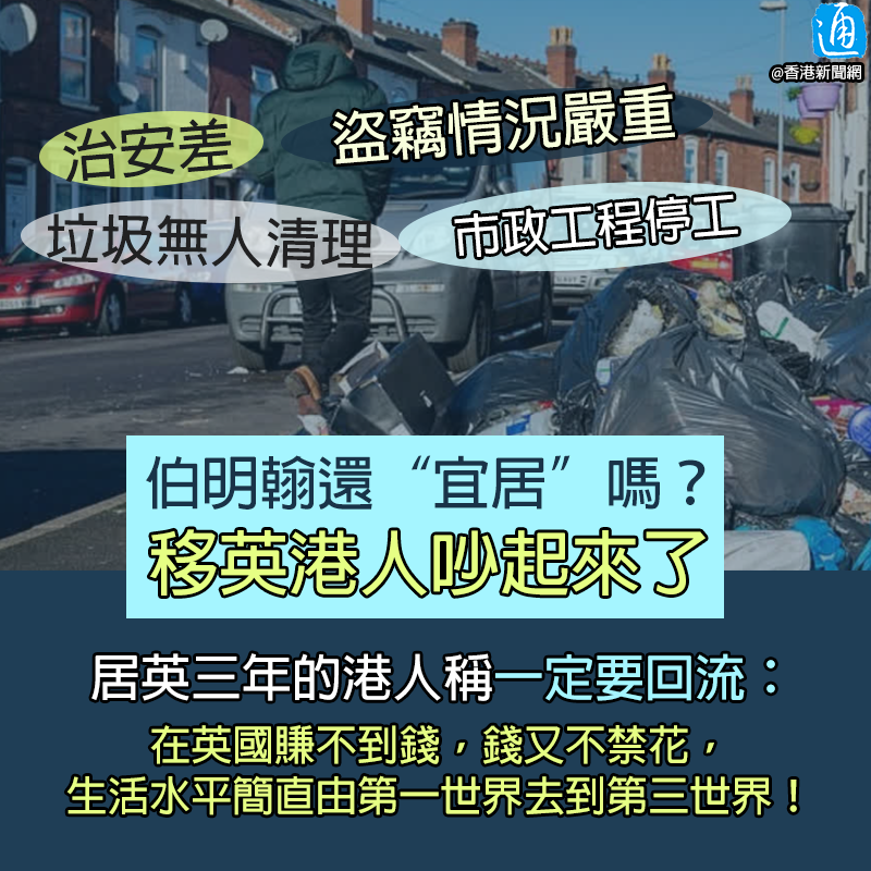 香港新聞網9月20日電 被移英港人捧為“非常宜居”的熱門落腳地、英國第二大城市伯明翰9月初宣布破產,引發不少港人憂慮,近日就有移英港人就伯明翰是否宜居吵了起來。 一名移英港人日前在社媒專頁留言,提到自己將要移居伯明翰,希望將一部在港私家車運抵當地。 適逢伯明翰宣布破產不久,帖文其後引發不少“同路人”現身說法,有人直言伯明翰的治安很差、盜竊情況嚴重,勸說不要前往。“我朋友去了伯明翰一年就回流,說那裡治安很差,人很窮,家裡都被人偷了!”“伯明翰偷車情況好嚴重,運部車過去給人偷嗎?” “好大機會治安越來越差,政府沒錢搞好醫院學校等,人工相對低,如果有小朋友更加不好。”还有人擔憂隨著伯明翰市政府破產,醫療教育等社會福利會越來越差。 有在伯明翰定居的港人近日對傳媒指出,受市政府財困影響,不少市政工程已停工,市面愈來愈多垃圾無人清理,“最近去市中心火車站,發現少了很多清潔工人,亦有很多垃圾堆積沒有人清理。”